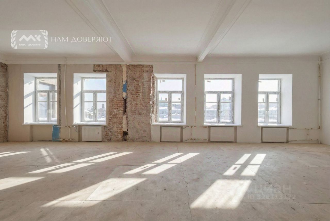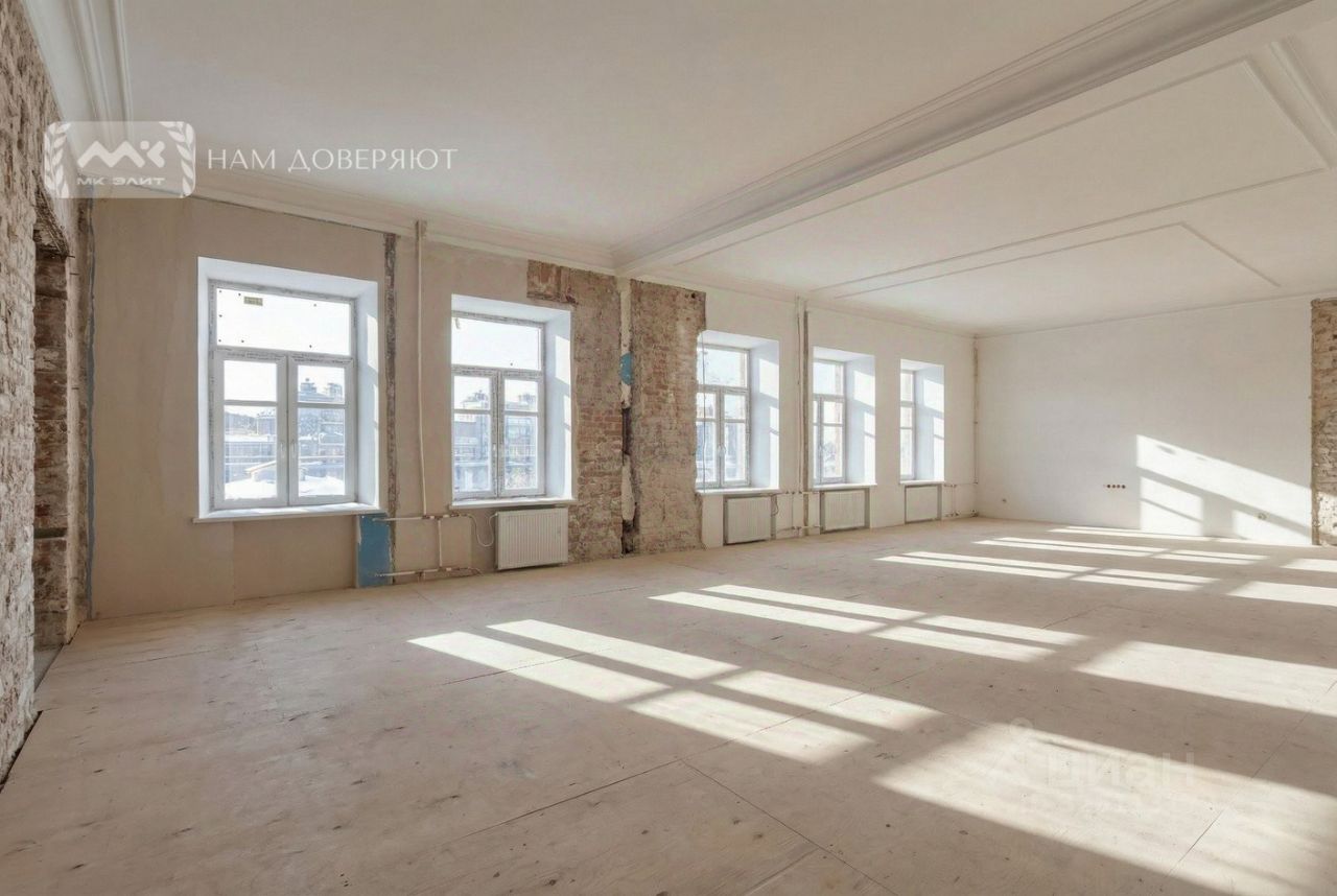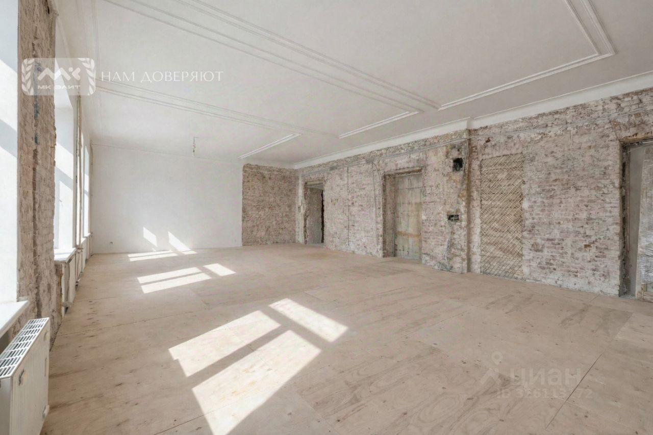 Квартира находится на 5 этаже. Сейчас это свободная планировка без стен: заменен пол, демонтированы перегородки, заменены окна на двухкамерные стеклопакеты, новые мраморные подоконники — отличная база, чтобы сделать интерьер под себя без компромиссов. Высота потолков 3,7м. Есть планировочное решение с техническим проектом.