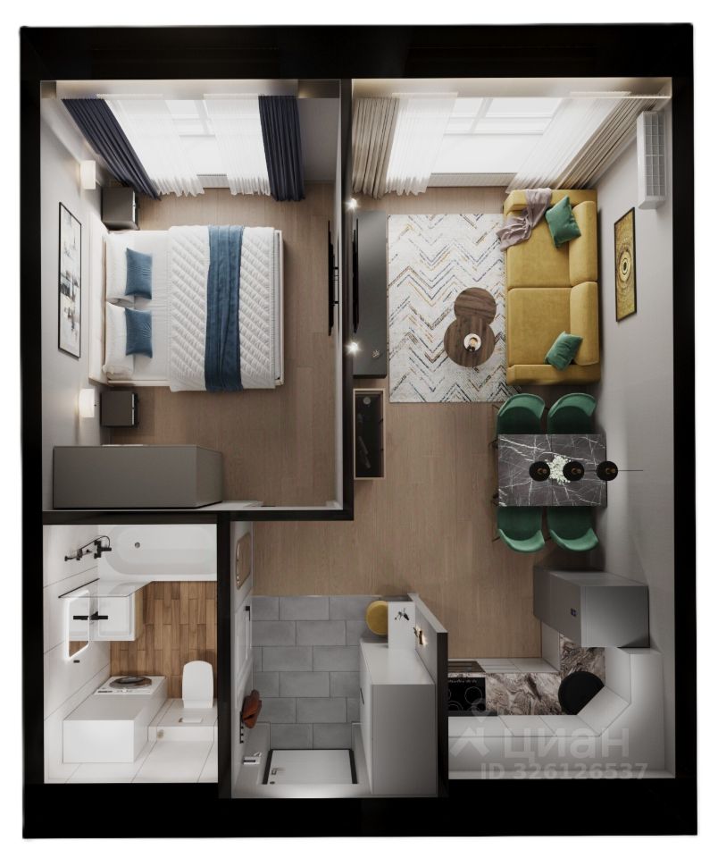 - Кладовые помещения на каждом этаже и на -1 этаже. В проекте 25 планировочных решений: от уютных студий от 21,51 м² до квартир с тремя спальнями и кухней-гостиной до 66,58 м² с функциональным разделением на гостевую и приватные зоны.