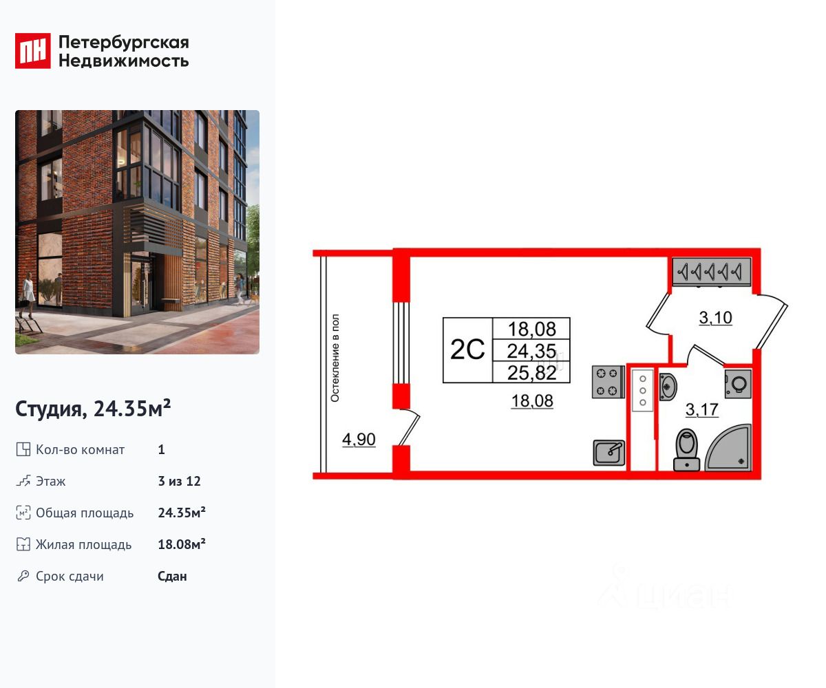 Продается уютная студия в жилом комплексе ''Сенат'' в престижном Московском районе. До метро можно добраться пешком всего за 20 минут. Удобная, классическая, функциональная европланировка, вместительная прихожая 3.1 м². Общая площадь студии - 24.35 м², жилая 18.08 м², высота потолка 2.77 м. Квартира продается с отделкой ''NORD LINE WHITE ВК''. Что особенного в ЖК ''Сенат''? • Престижный Московский район • Авторская архитектурная концепция • Центральная входная группа с ресепшен и лаундж-зонами • Променад с воздушным мостом и просторными зонами отдыха • Зимний каток, площадки SetlKids и уютные дворы-патио • Инновационный Лицей Setl с оригинальной архитектурной концепцией и уникальной образовательной средой