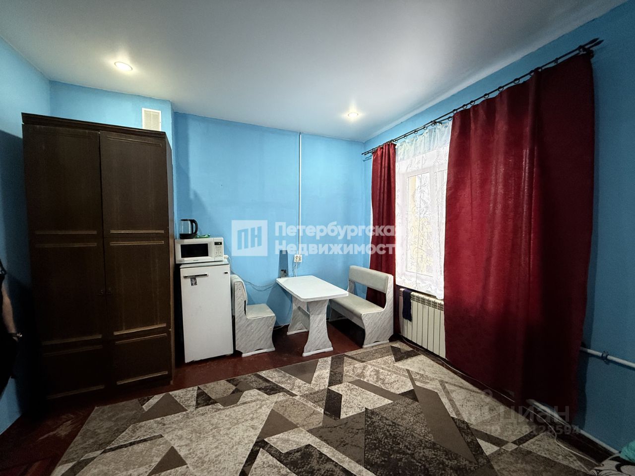 В комнате проведен косметический ремонт. Мебель остается покупателю. Стены толстые, соседей не слышно, тихо и спокойно. Квартира малонаселенная, всего девять комнат, и не во всех проживают. В местах общего пользования всегда чисто, соседи порядочные и работающие люди, ищем такого же покупателя. Коридор широкий, можно установить шкаф. Санузлы отдельные для каждых трех комнат. Имеется стиральная машина. Плита электрическая. Горячая вода всегда есть, свой водонагреватель. Двери на этаж и в комнату новые, надежные. Двор тихий, много зелени, есть площадка и тренажеры.