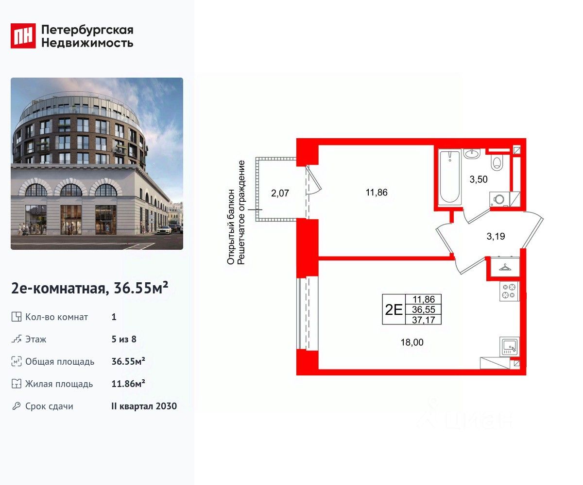 Удобная, классическая, функциональная европланировка, большая кухня-гостиная 18 м², вместительная прихожая 3.19 м². Общая площадь квартиры - 36.55 м², жилая 11.86 м², высота потолка 2.7 м.