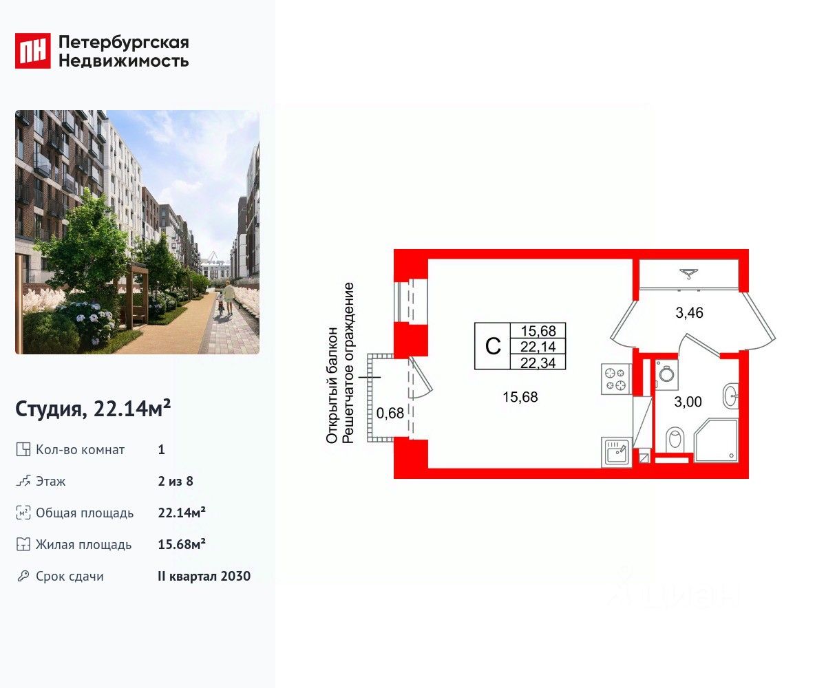 Удобная, классическая, функциональная европланировка, просторная прихожая 3.46 м². Общая площадь студии - 22.14 м², жилая 15.68 м², высота потолка 2.7 м.