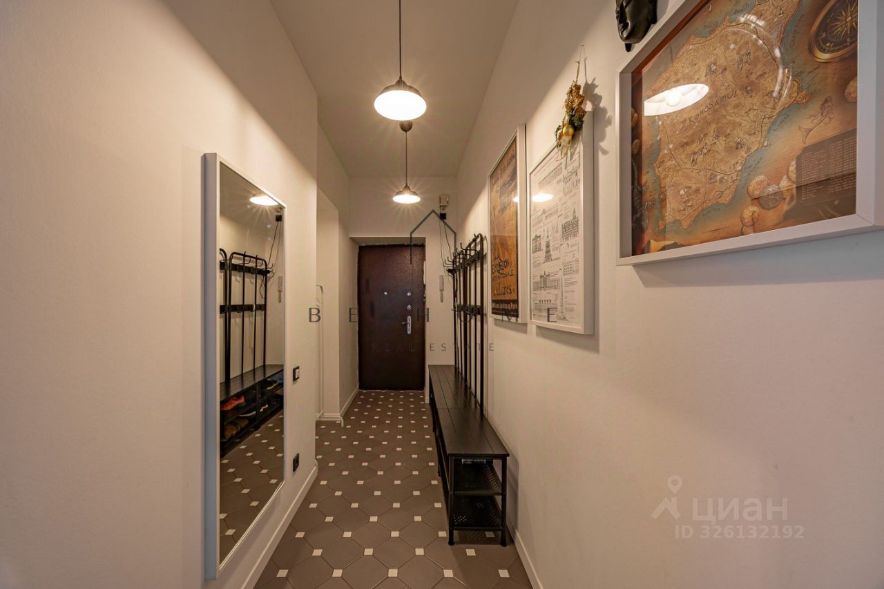 В квартире выполнен качественный ремонт. Просторная гостиная совмещенная с кухонной зоной, две изолированные комнаты: спальня с большой кроватью и гардеробной, детская комната, раздельная ванная комната. В квартире есть вся необходимая мебель и бытовая техника для комфортного проживания.
