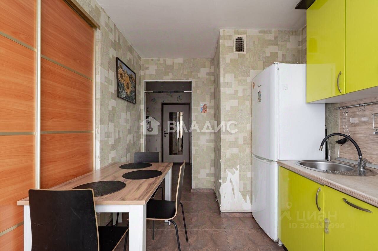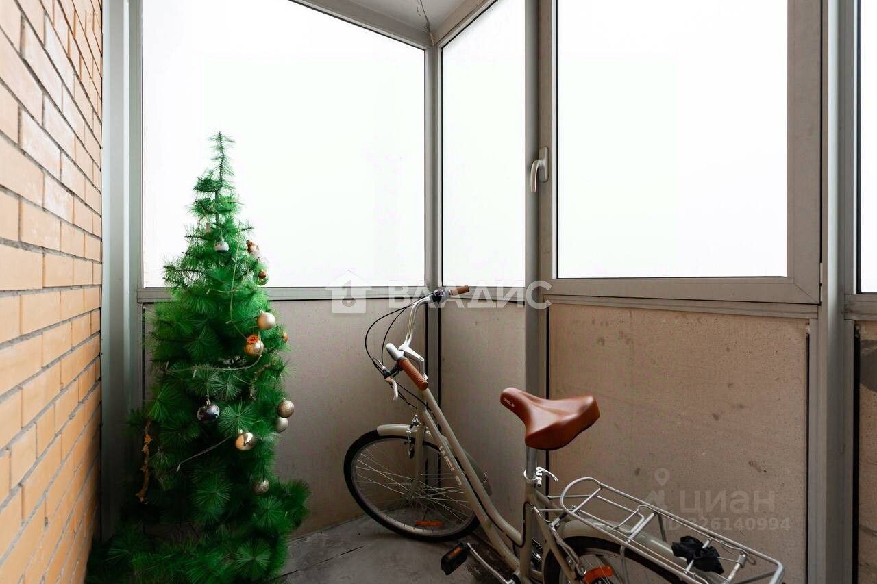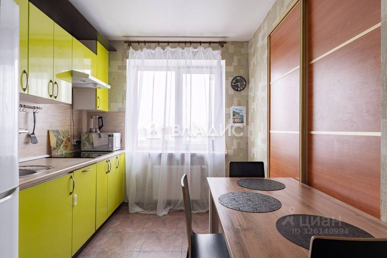 Квартира расположена на 10-м этаже 20-этажного кирпично-монолитного дома, построенного в 2014 году. Общая площадь квартиры составляет 33,7 кв. м, из которых 17,9 кв. м — жилая площадь, 8,2 кв. м — кухня. Высота потолков — 2,7 м, что создаёт ощущение простора и свободы.