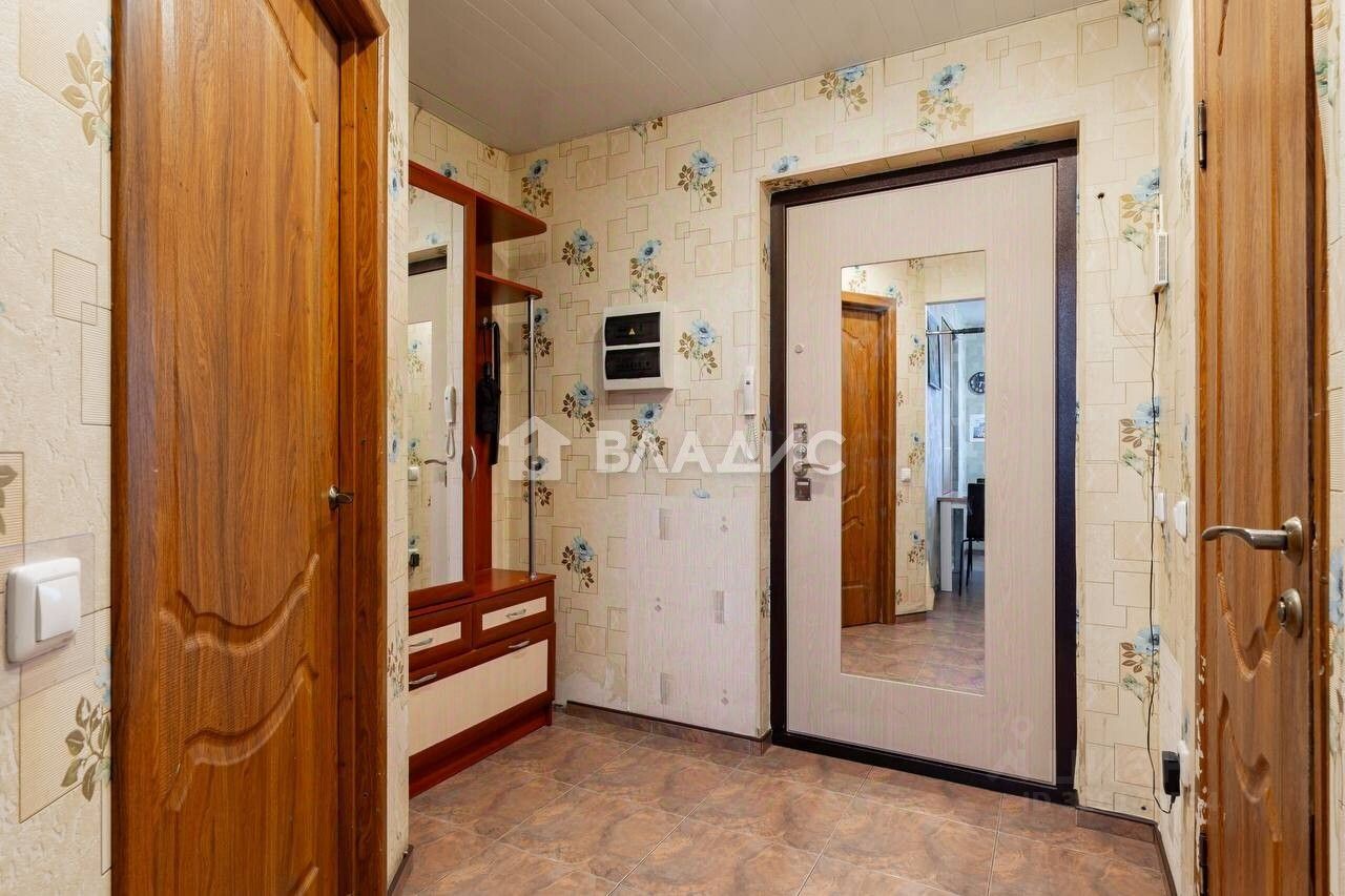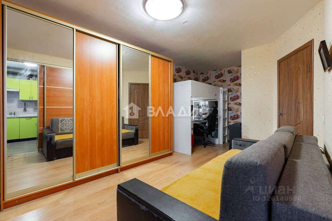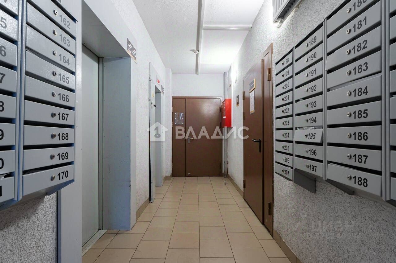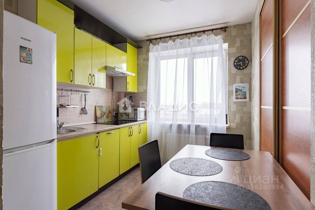 Квартира расположена на 10-м этаже 20-этажного кирпично-монолитного дома, построенного в 2014 году. Общая площадь квартиры составляет 33,7 кв. м, из которых 17,9 кв. м — жилая площадь, 8,2 кв. м — кухня. Высота потолков — 2,7 м, что создаёт ощущение простора и свободы.