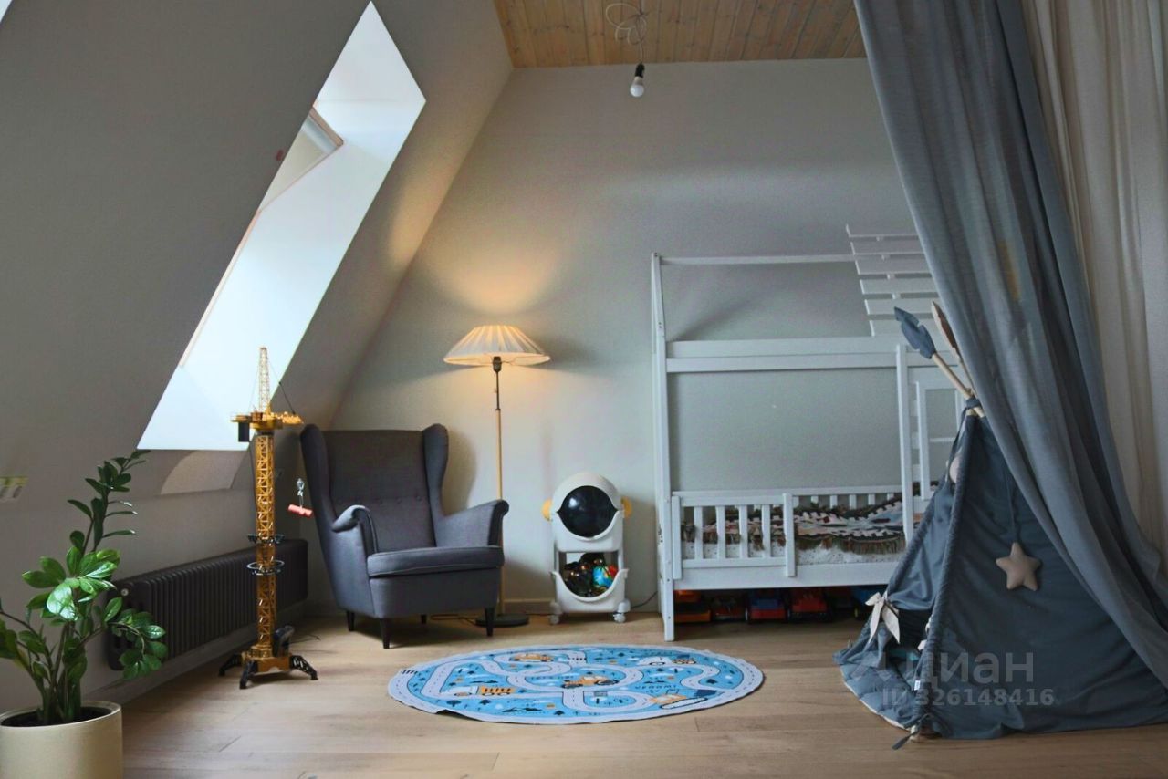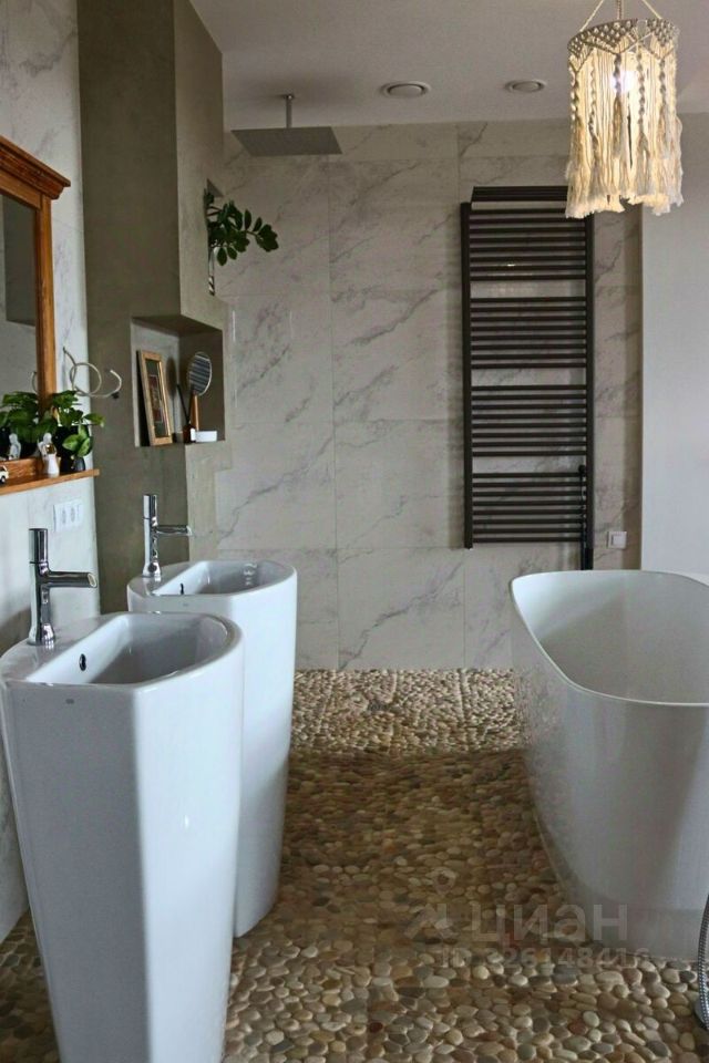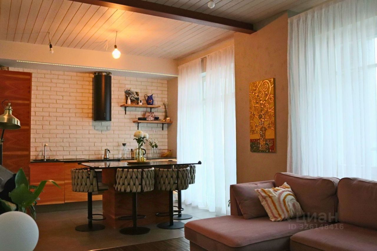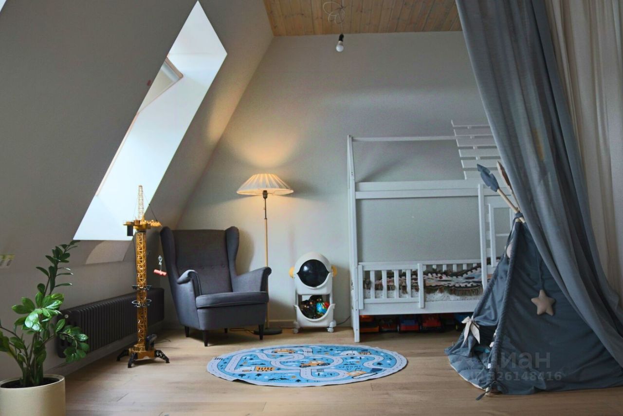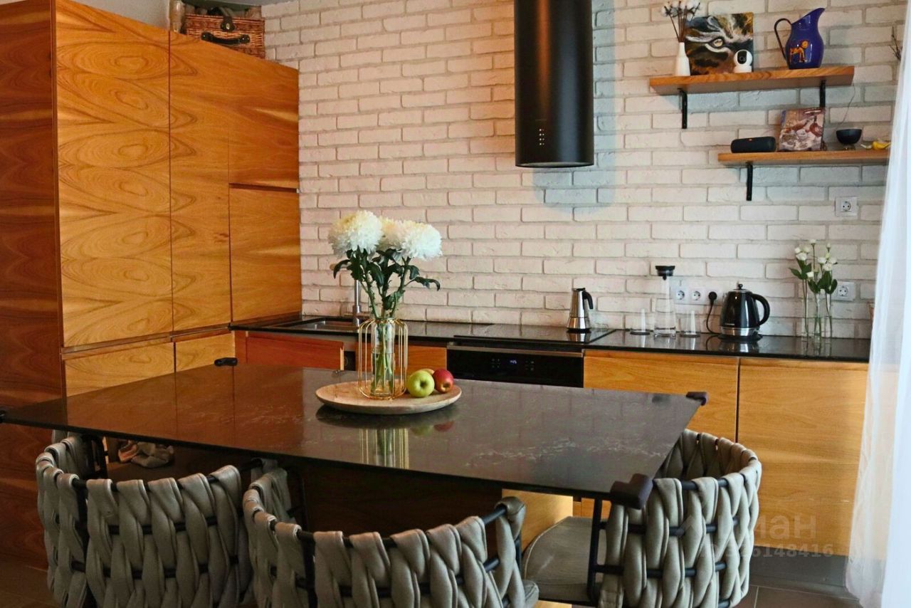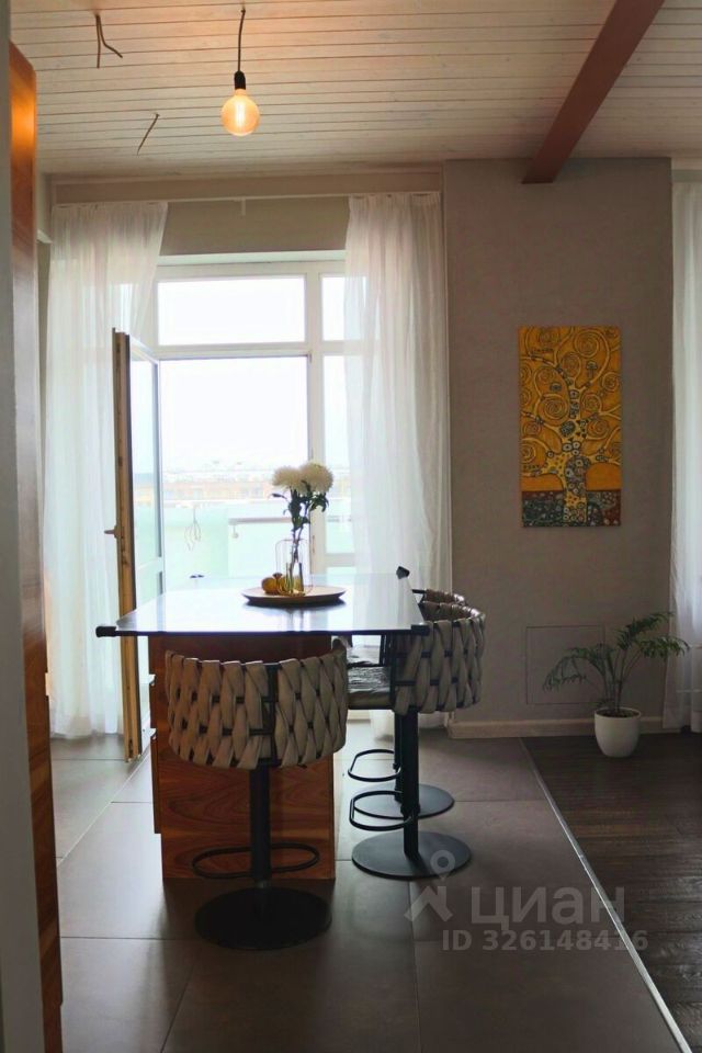 В квартире просторная кухня-гостиная площадью 27 кв.м с выходом на большую лоджию 9 кв.м, мастер-спальня площадью 37 кв.м с отдельной ванной и санузлом, кабинет 12 кв.м, большая оборудованная гардеробная 7,5 кв.м, второй просторный санузел 6 кв.м, хозяйственная комната 3 кв.м. Над квартирой технический этаж.