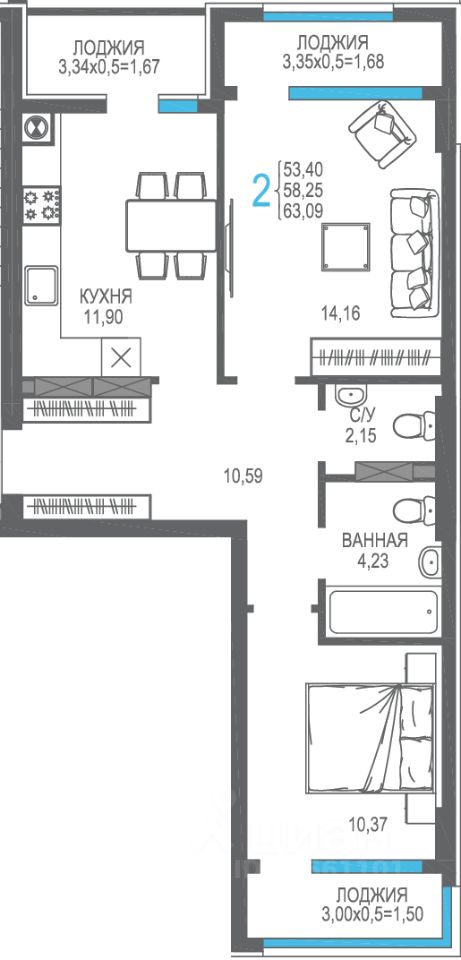 Общая площадь58,25 м2
