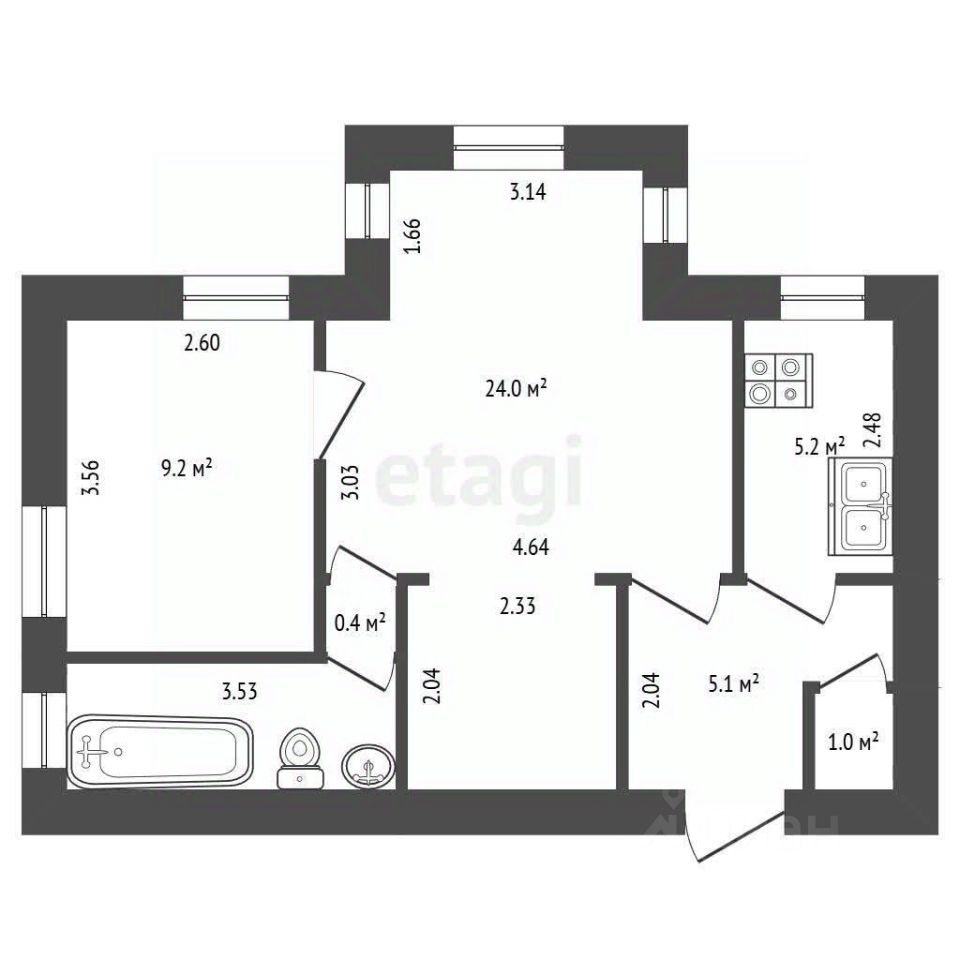Планировка включает две смежные комнаты 24 и 9,2 м², кухню 5,2 м², прихожую с кладовой и совмещенный санузел. В квартире уложен паркет, установлена новая сантехника, а во всем доме произведена замена радиаторов отопления.