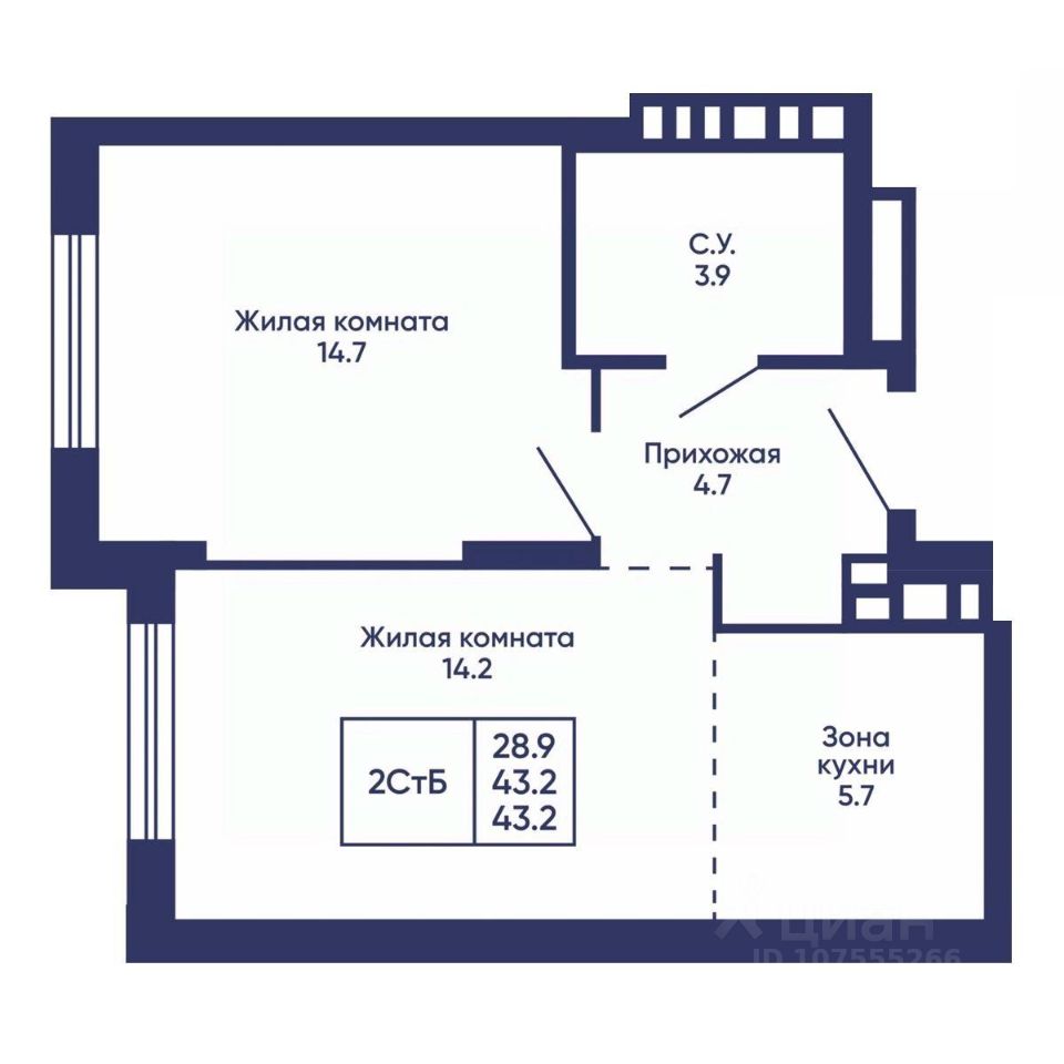Общая площадь43,2 м2