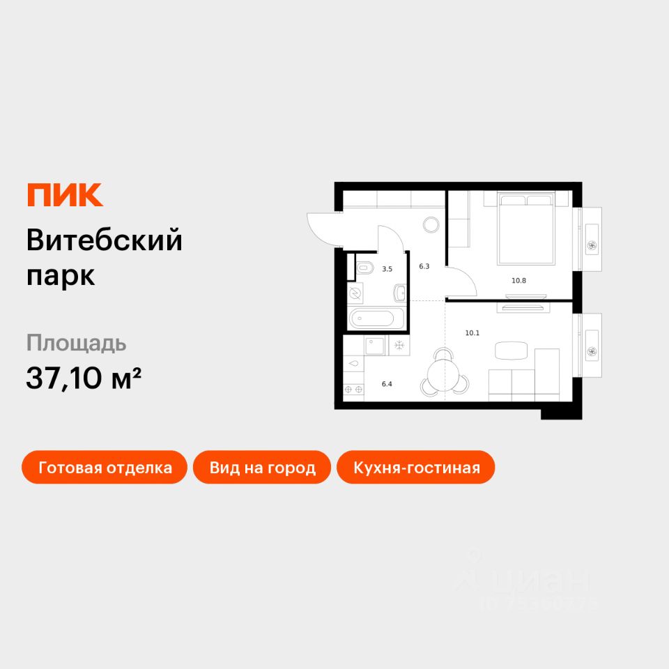 Продаётся 1-комн. квартира площадью 37,1 кв.м на 11 этаже 12 этажного дома (Корпус 6, Секция 3) проекта ПИК Витебский парк. Светлый просторный подъезд на уровне земли, функциональная планировка, большие окна, c отделкой.
