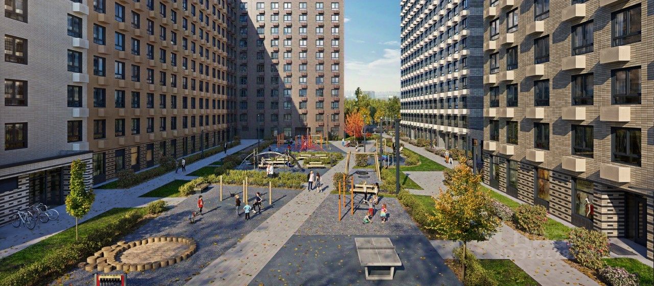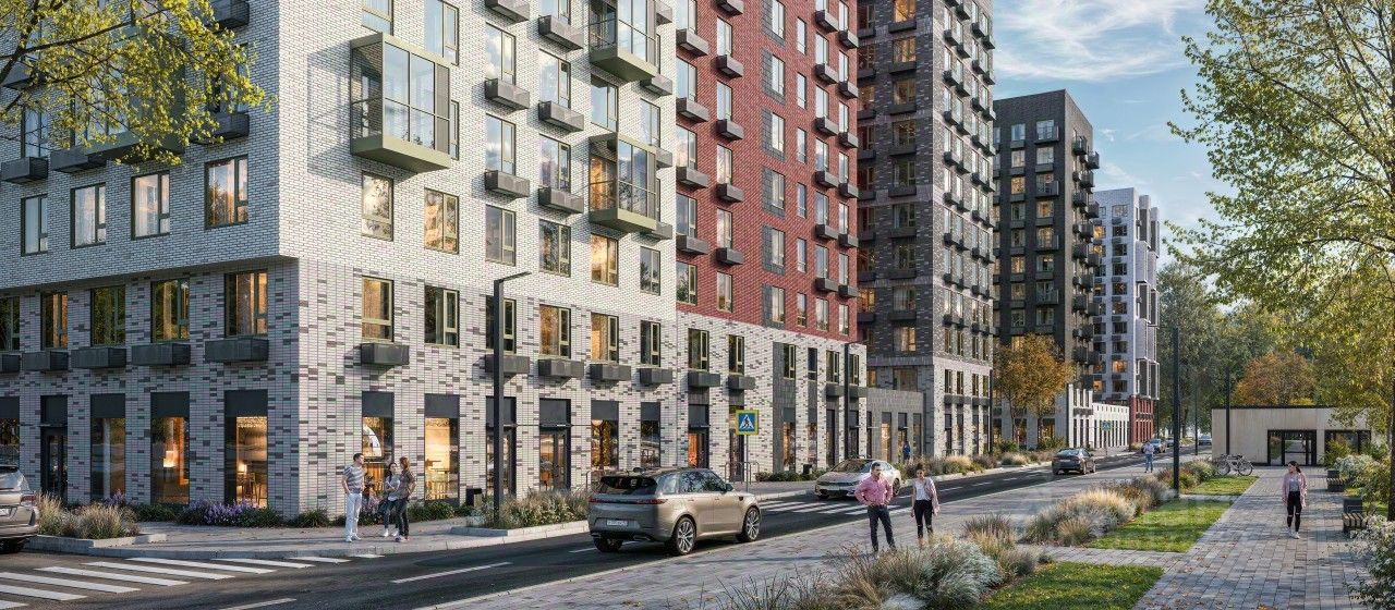 В квартал входят 3 детских сада, школа и 7 жилых домов с дворами-парками, куда не могут зайти посторонние люди и заехать автомобили. Школа на 1250 мест и детский сад на 350 мест откроются одновременно с заселением первой очереди, это значит, что жители проекта смогут отдать своих детей в новые образовательные учреждения на территории квартала. Во дворах приятно отдыхать, знакомиться с соседями и даже заниматься йогой, а для детей мы построим детские площадки. Рядом появятся современные спортивные площадки. На первых этажах домов откроются магазины, кафе и другие сервисы. Через весь жилой район протянется широкий пешеходный бульвар для прогулок и спорта.
