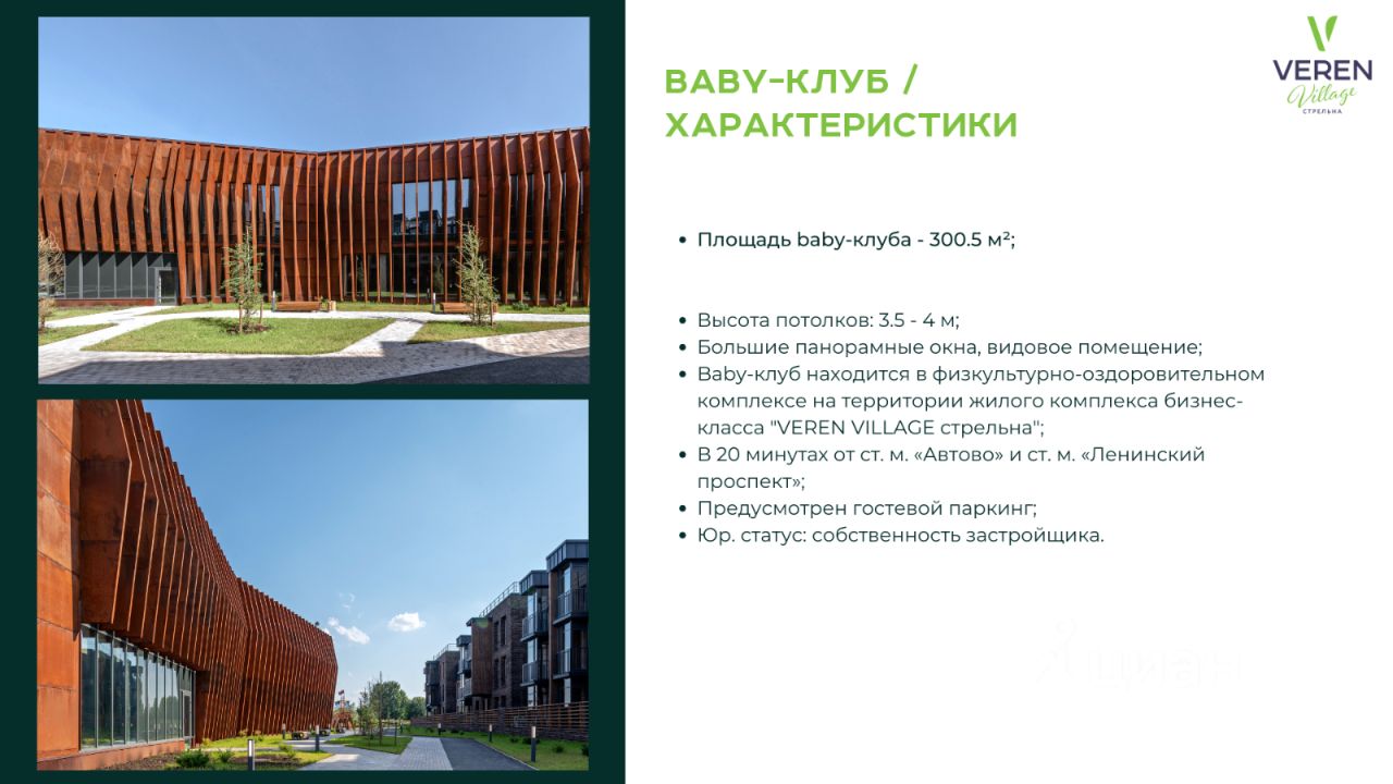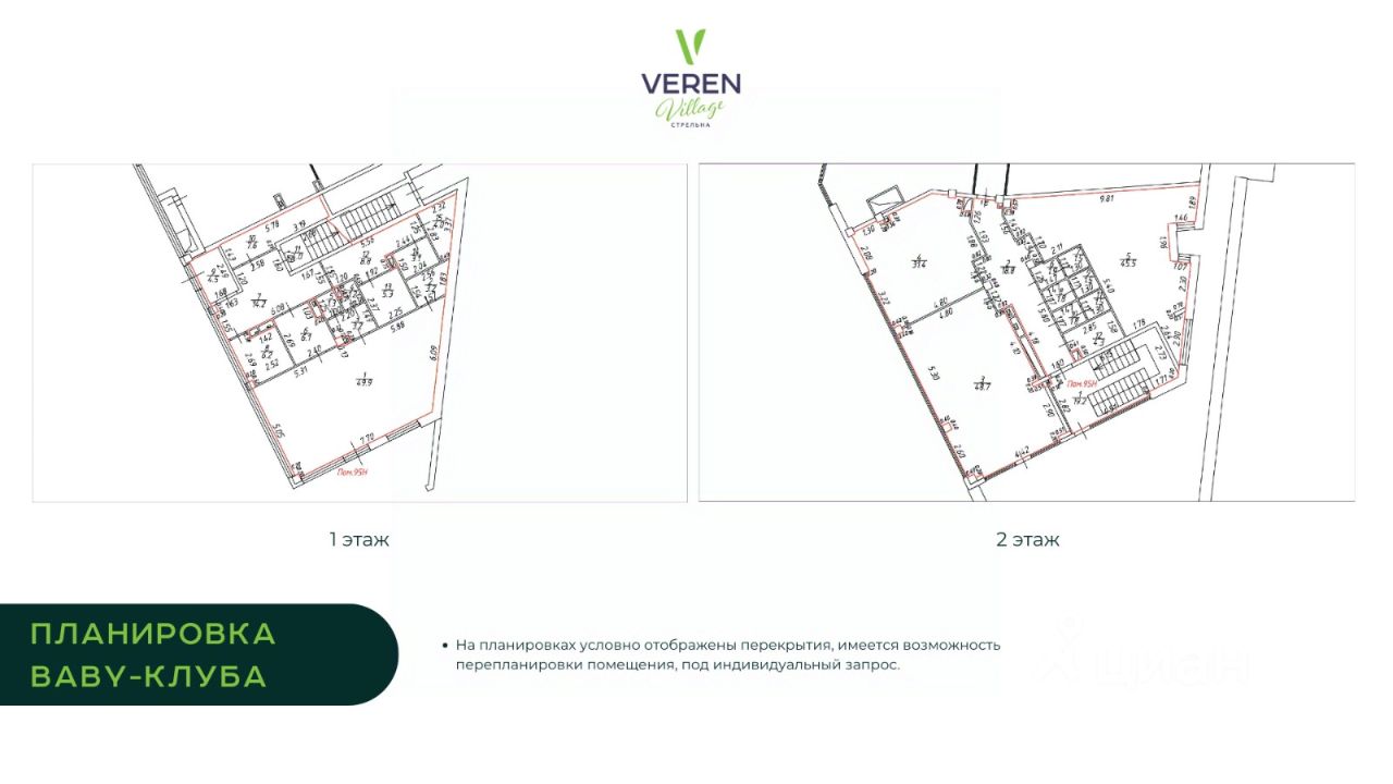 Помещение расположено в отдельно стоящем 2-этажном здании на территории жилого комплекса бизнес-класса VEREN VILLAGE стрельна. Дом сдан, территория заселена.