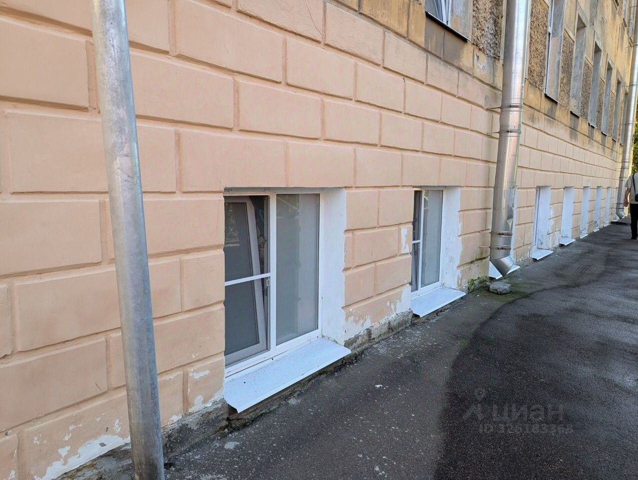 - Три оконных проема, сейчас закрыты железными листами. Два выходят в сад, одно во двор.