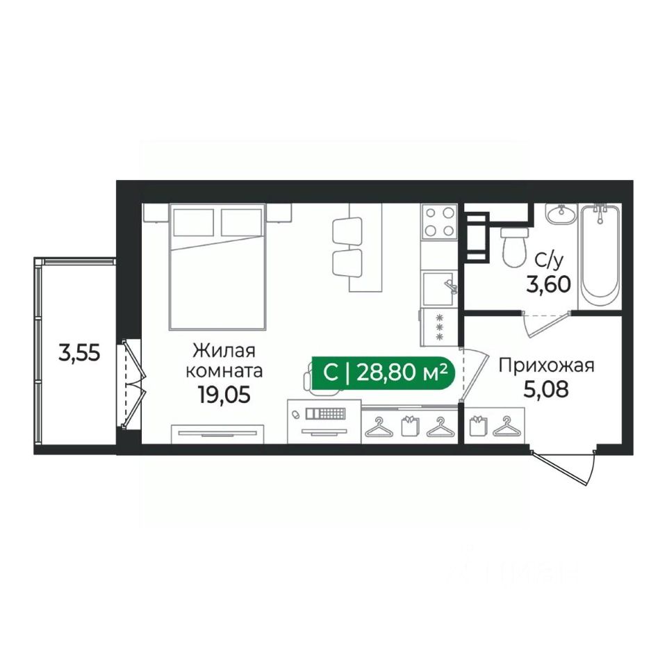 Общая площадь28,8 м2