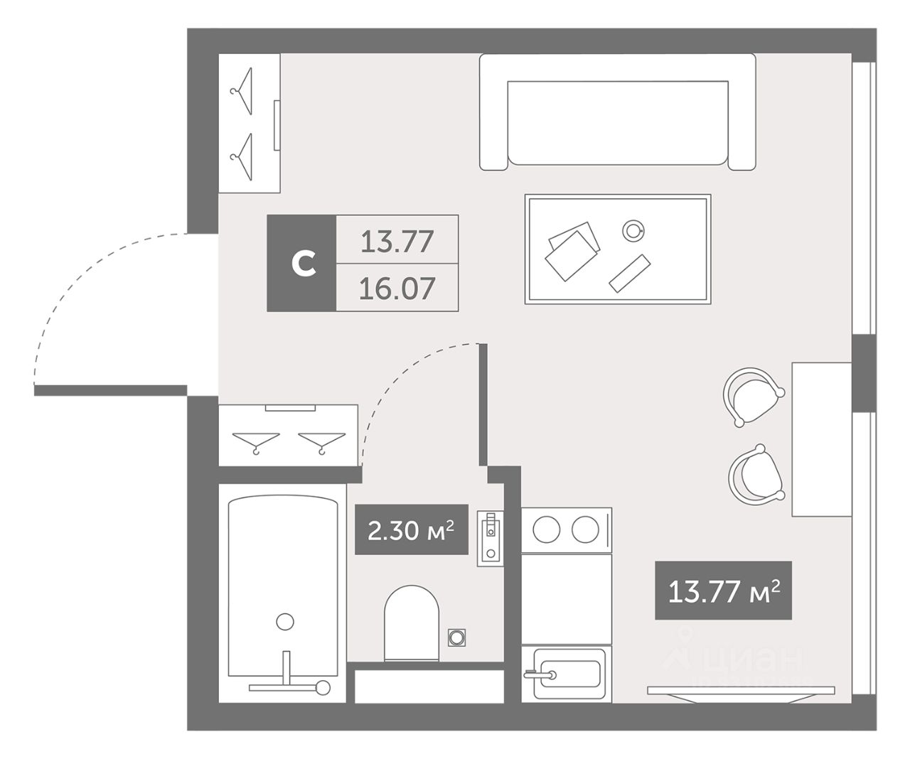 продам 1-к, Коломяжский проспект, 46 837 068 ₽