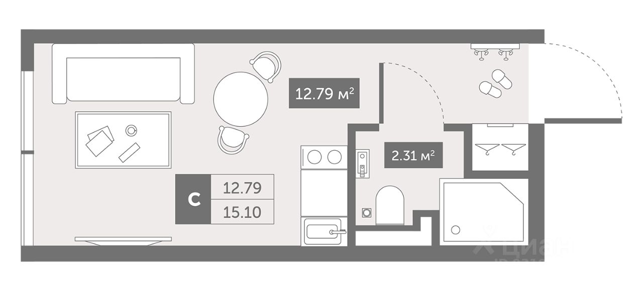 продам 1-к, Коломяжский проспект, 44 874 355 ₽