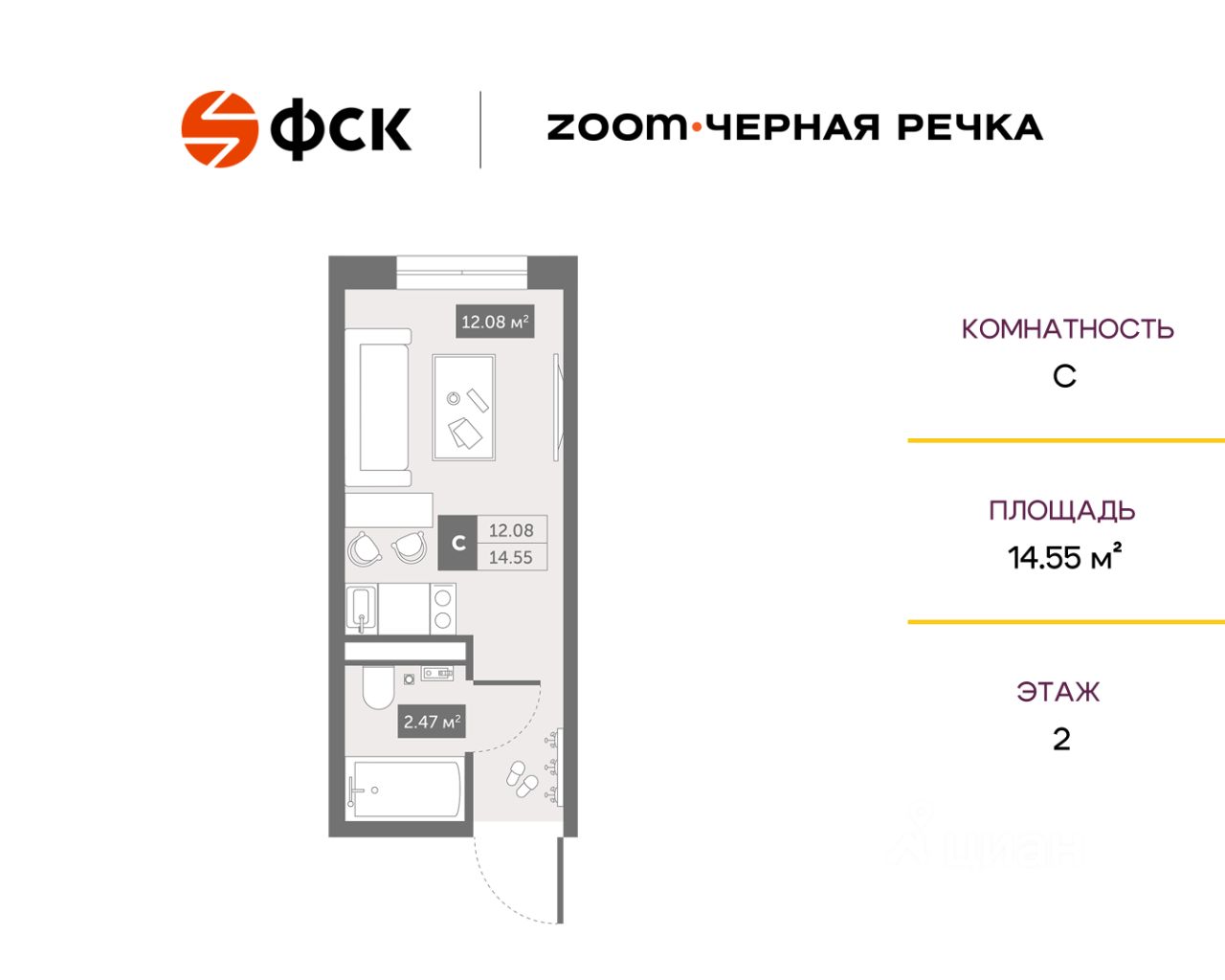продам 1-к, Коломяжский проспект, 44 567 463 ₽
