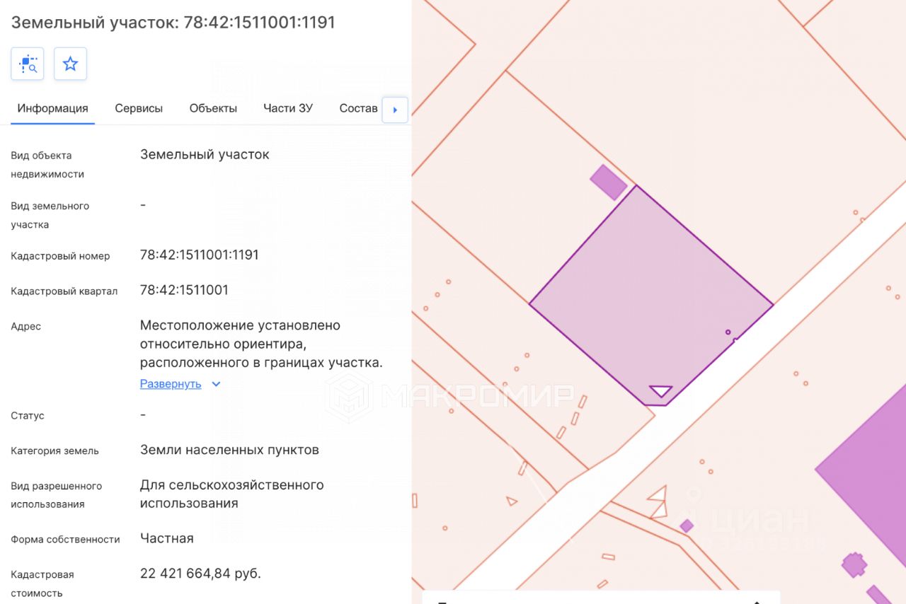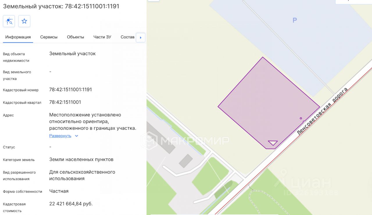 Арт. 129085917 Санкт-Петербург, Пушкинский район, поселок Шушары, территория предприятия ''Ленсоветовское'', в районе Ленсоветовской дороги, между Московским шоссе и улицей Софийская, 8 км до КАД Продается земельный участок промышленного назначения, площадью 1,06 Га (от 106 соток), Кадастровый номер: 78:42:1511001:1191: Охранная зона инженерных коммуникаций (объектов электрического хозяйства) вдоль Ленсоветовской дороги 17 соток: Оборудован съезд с Ленсоветовской дороги: Категория земель: Земли населённых пунктов, Виды разрешенного использования по ПЗЗ, Зона ТР1-3 (зона объектов отдыха и туризма)): - Предоставление коммунальных услуг (код 3.1.1), - Административные здания организаций, обеспечивающих предоставление коммунальных услуг (код 3.1.2), - Бытовое обслуживание (код 3.3), - Магазины (код 4.4), - Общественное питание (код 4.6), - Гостиничное обслуживание (код 4.7), - Стоянка транспортных средств (код 4.9.2), - Туристическое обслуживание (код 5.2.1), - Стоянки транспорта общего пользования (код 7.2.3), - Улично-дорожная сеть (код 12.0.1), - Благоустройство территории код 12.0.2), - Ведение садоводства код 13.2), - Высотный регламент 40 м. Электроснабжение - на границе участка. Возможно Газоснабжение и Водоснабжение. Отличное предложение для бизнес проектов.