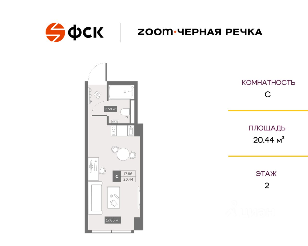 продам 1-к, Коломяжский проспект, 46 516 578 ₽