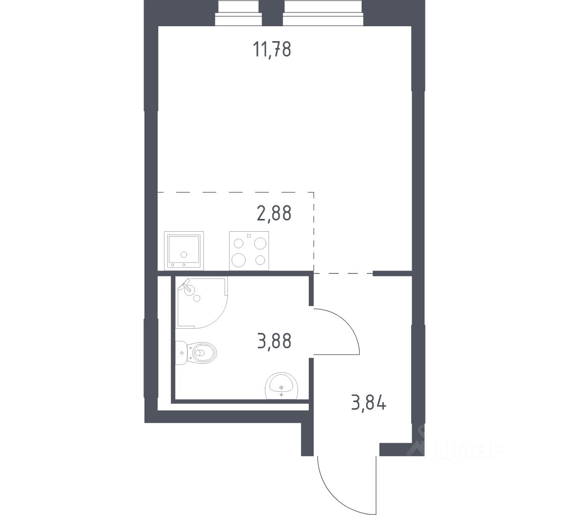 Общая площадь22,38 м2
