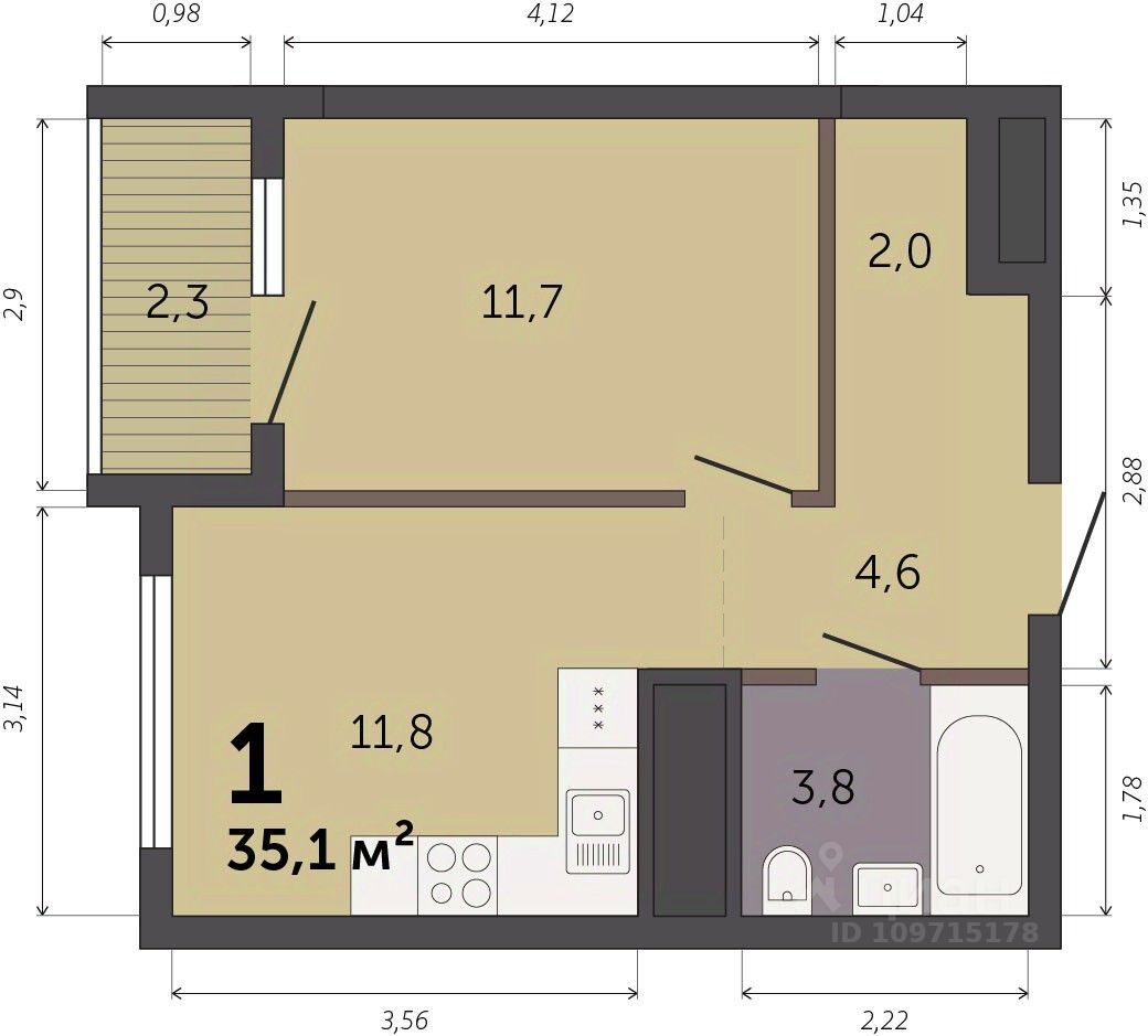 Продаётся 1-комнатная квартира в строящемся доме (Секция 1.1), срок сдачи: I-кв. 2028, общей площадью 35.1 кв.м., на 23 этаже. Новый жилой комплекс ''Парк Культуры'' от застройщика ''СЗ Новый Дом'' расположен по адресу: г. Екатеринбург, Базовый переулок.