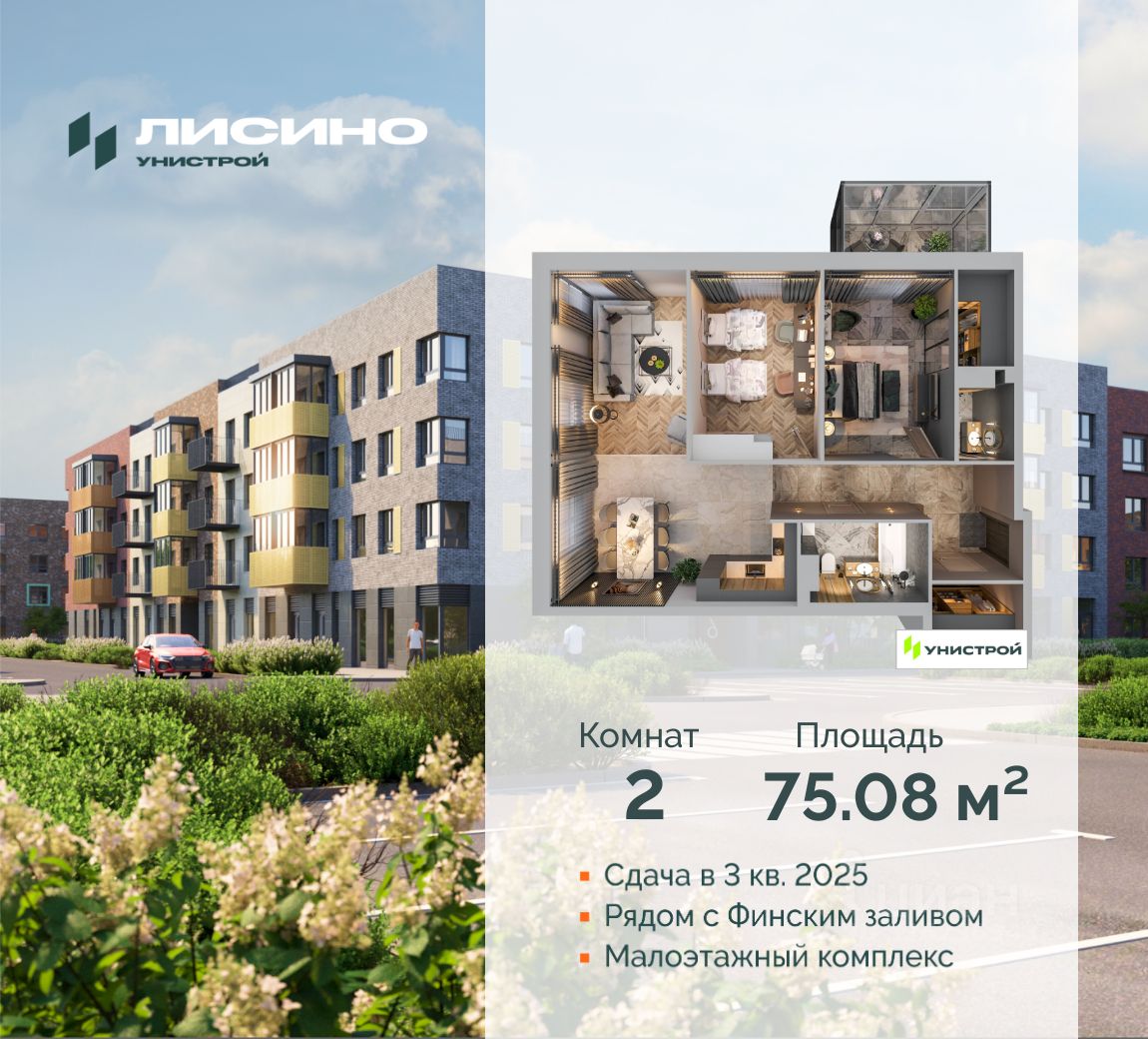 Лисино ''Лисино'' город-парк в Курортном районе Санкт-Петербурга от компании ''Унистрой''. Рядом Финский залив, экопарк, озеро, а также самый высокий небоскреб в Европе. Комплекс отличает чистый воздух, малоэтажная застройка, фасады из клинкерной плитки, уютные дворы, прогулочный бульвар, парковые зоны. Представлено разнообразие планировок: от студий, до двухуровневых квартир. Живите там, где другие отдыхают Город-парк ''Лисино'' находится в Курортном районе Санкт-Петербурга, в 15 минутах езды по Приморскому шоссе от станции метро ''Беговая''. Рядом Финский залив с благоустроенным пляжем, экопарк, озеро Сестрорецкий разлив и ''Лахта Центр''. Локация славится морским воздухом и хвойными лесами.