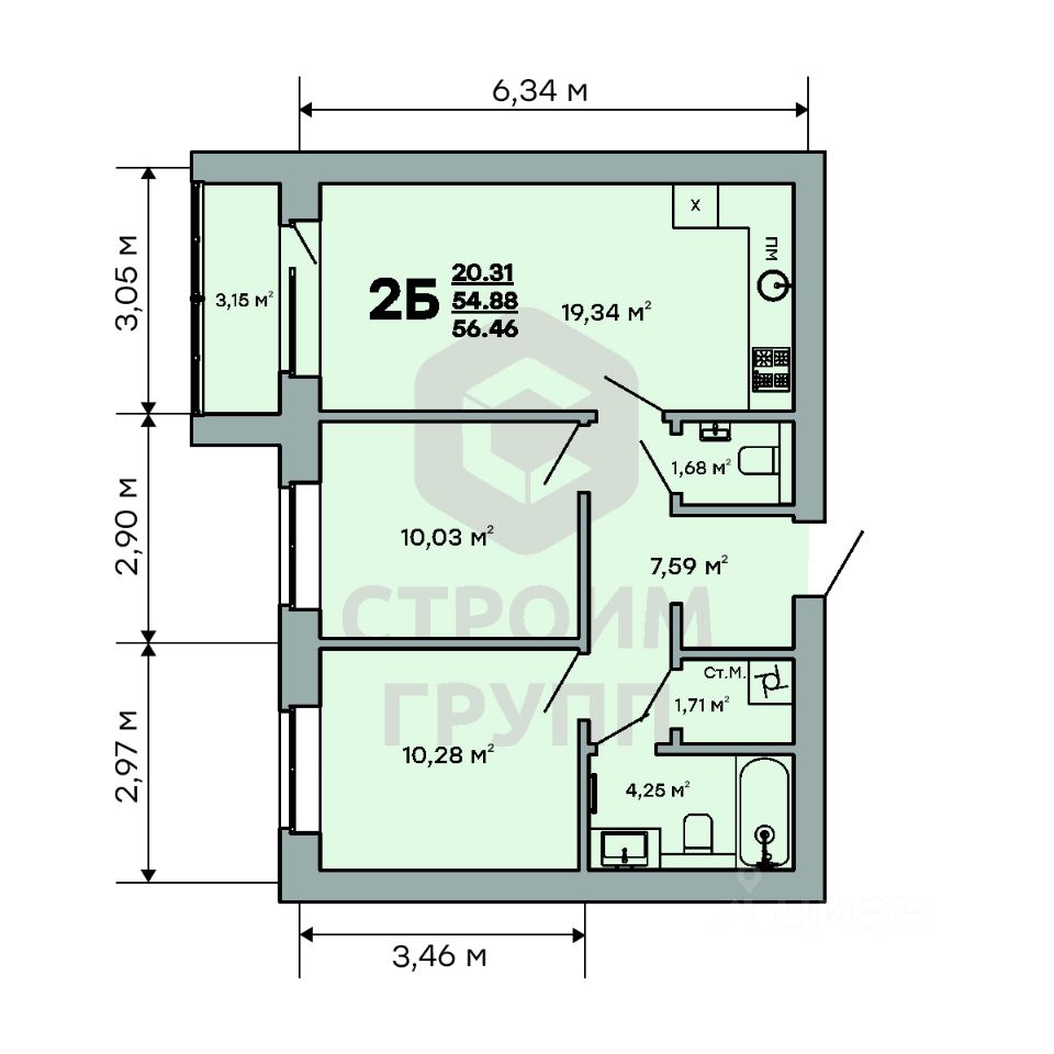 Общая площадь56,46 м2