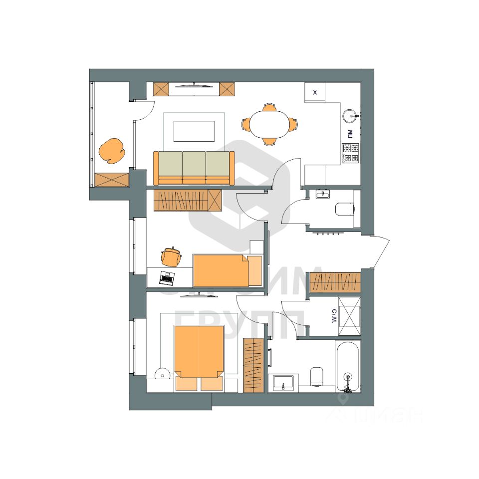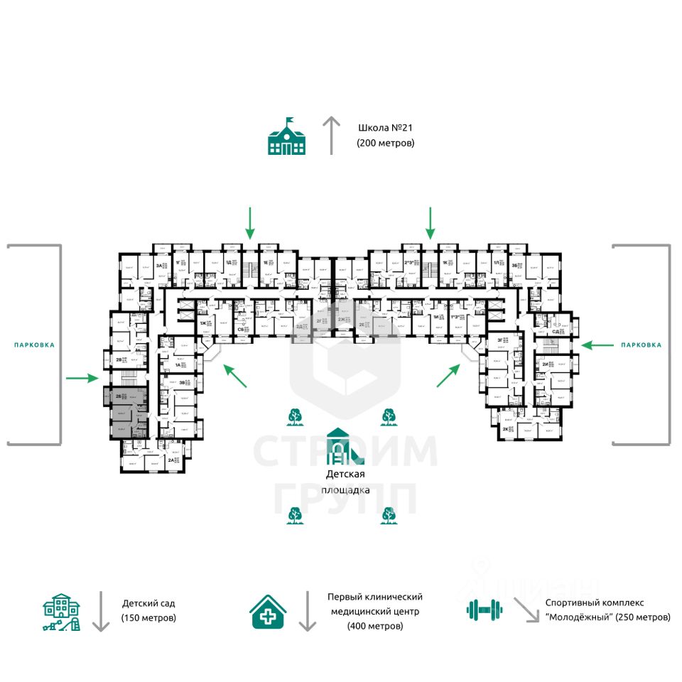 Особенностью этой двухкомнатной квартиры является объединенная с кухней гостиная общей площадью более 19 квадратных метров! Помещение разделено на зоны для приготовления пищи, где можно установить кухонный гарнитур и большой обеденный стол для всей семьи, и ТВ-зону, где поместится хороший просторный диван. Из кухни имеется выход на лоджию (больше 3 кв. м.), которая будет остеклена 2-камерным стеклопакетом при сдаче дома. При такой планировке совмещенной кухни и гостиной, неоспоримым преимуществом этой двухкомнатной квартиры являются две отдельные комнаты. Одну из них, площадью 10,3 квадратных метров, можно использовать под спальную комнату, где можно установить широкую кровать или раскладной диван и вместительный шкаф для одежды. Вторую комнату, площадью 10 квадратных метров, можно использовать в качестве детской или кабинета. Интересным и полезным решением в этой двухкомнатной квартире стали два санузла! Один - полноценный, площадью 4,25 квадратных метра, а второй - небольшой, площадью 1,7 квадратных метра, с отдельным унитазом. Для семьи с детьми - очень актуальное решение. Отдельное внимание стоит обратить на помещение рядом с большим санузлом в нём можно организовать отдельную постирочную комнату или гардеробную. Прихожая (больше 7,5 кв. м.) является непроходной. Изолированность прихожей позволяет держать в чистоте остальные помещения квартиры грязь с улицы не будет разноситься по комнатам. Доступны такие способы покупки, как наличные, ипотека от ведущих банков (в т.ч. все программы с субсидиями и господдержка), ипотека со снижением ставки за счёт застройщика, рассрочка до 2 лет напрямую от застройщика. В цену квартиры сразу входит ремонт в формате White Box с гарантией на все работы!