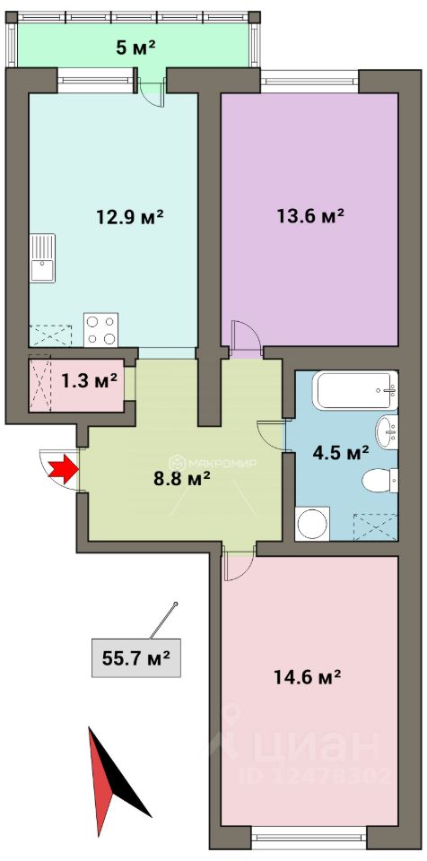 О квартире: Планировка: Двухсторонняя, все комнаты изолированные, правильной прямоугольной формы. Ремонт: Современный, выполнен с хорошим вкусом. Готовы к переезду! Этаж: 3-й, комфортный этаж. Кухня: Просторная, правильной формы с выходом на застекленный балкон. Дополнительно: Встроенная мебель (остаётся по желанию), кладовая комната в коридоре для хранения.