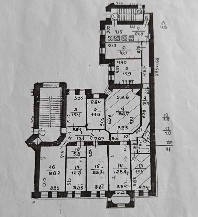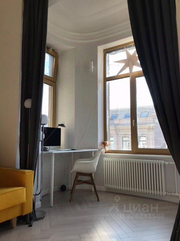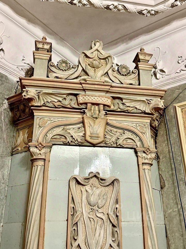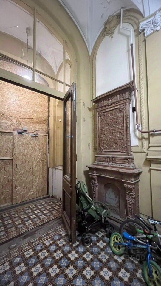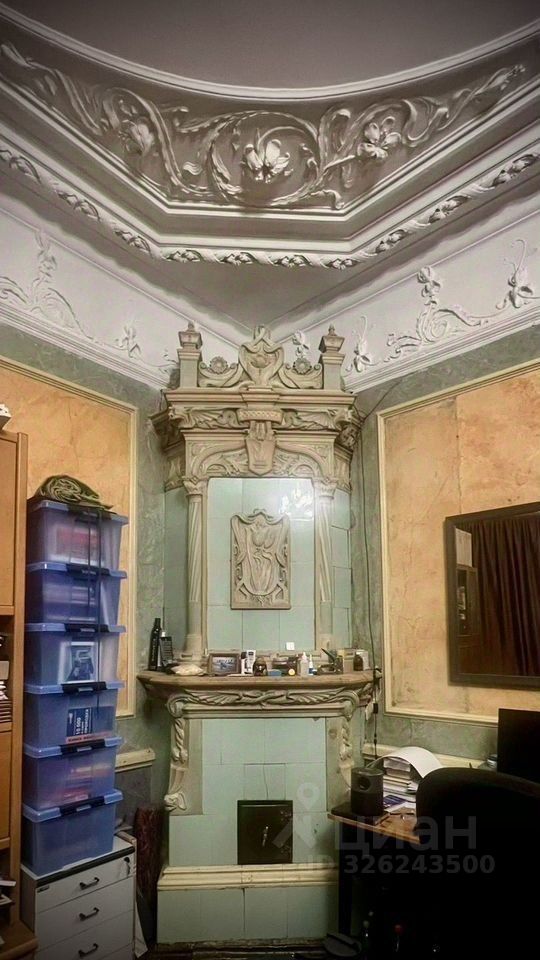 Маяковского. Площадь 286,5 м2. Расположена на 4 этаже, есть лифт. Есть печи, лепнина, фреска. Так же в одной из комнат жила Образцова. Квартира фасадная, есть лифт, требует ремонта