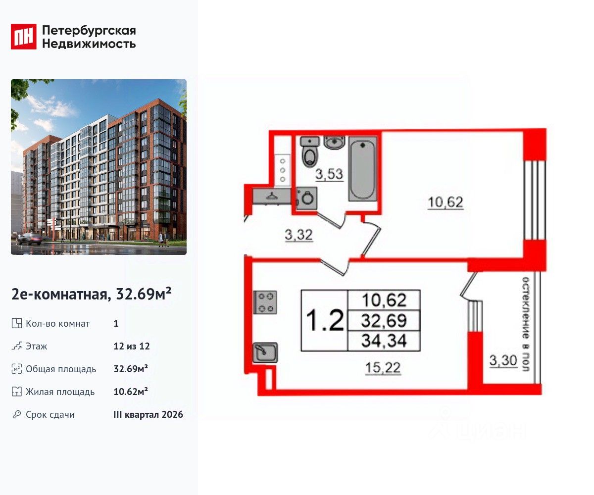 Удобная, классическая, функциональная европланировка, большая кухня-гостиная 15.22 м², вместительная прихожая 3.32 м². Общая площадь квартиры - 32.69 м², жилая 10.62 м², высота потолка 3 м.