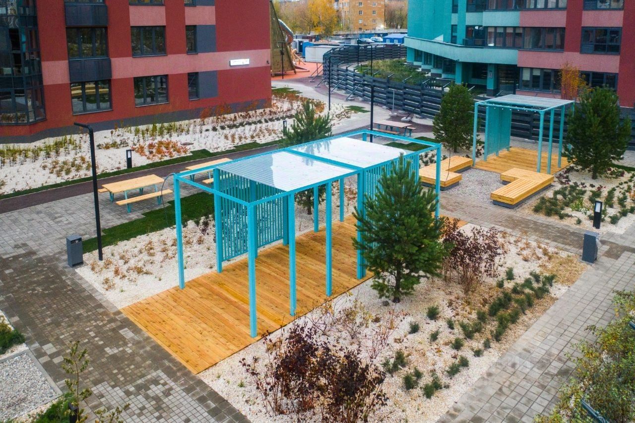 На первых этажах жилых домов разместятся магазины, кафе, ресторан, кондитерская, фитнес-центр, встроенный детский садик. Для удобства автовладельцев будет построен многоуровневый наземный паркинг.