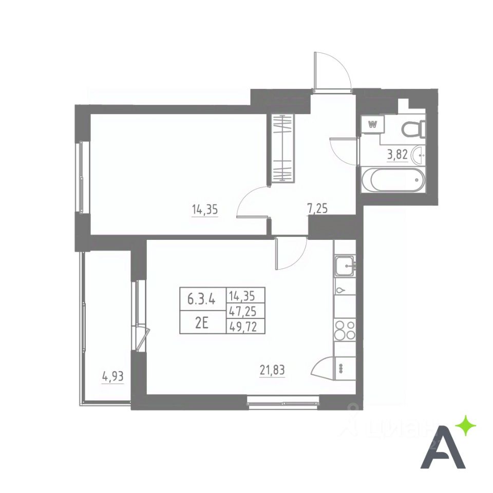 Общая площадь49,52 м2