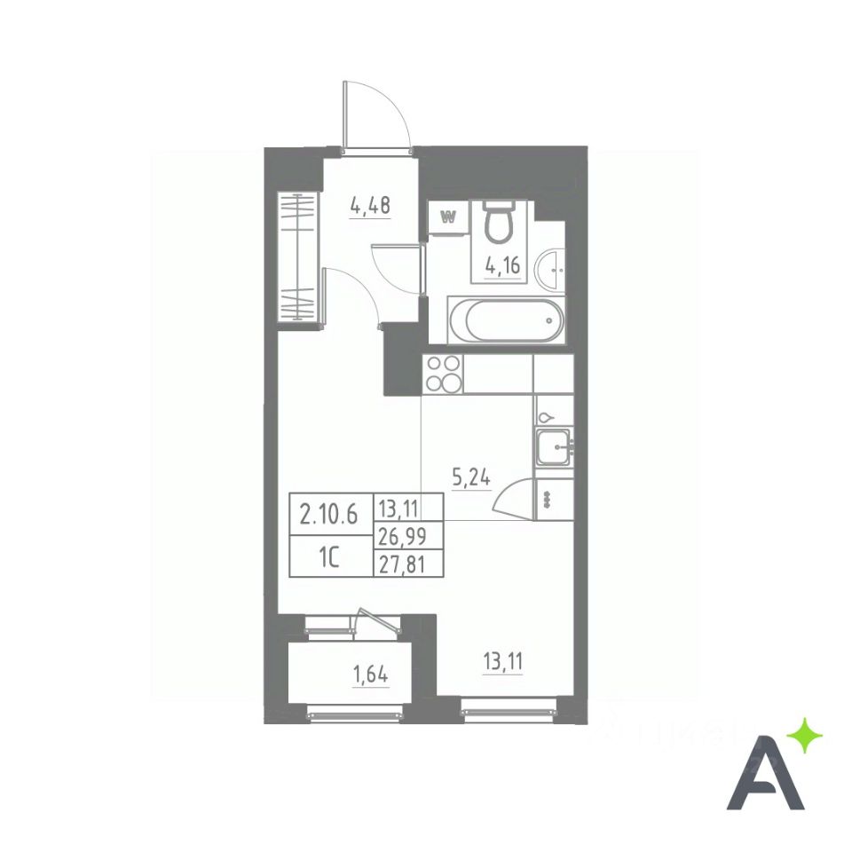 Общая площадь27,81 м2