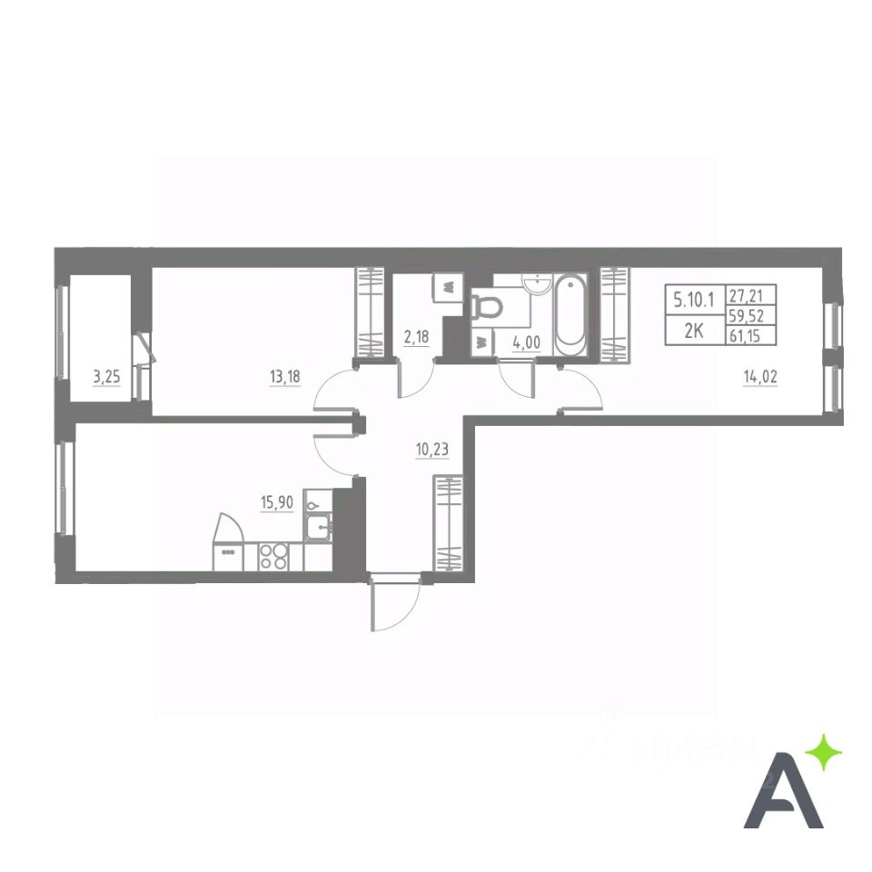 Общая площадь61,15 м2