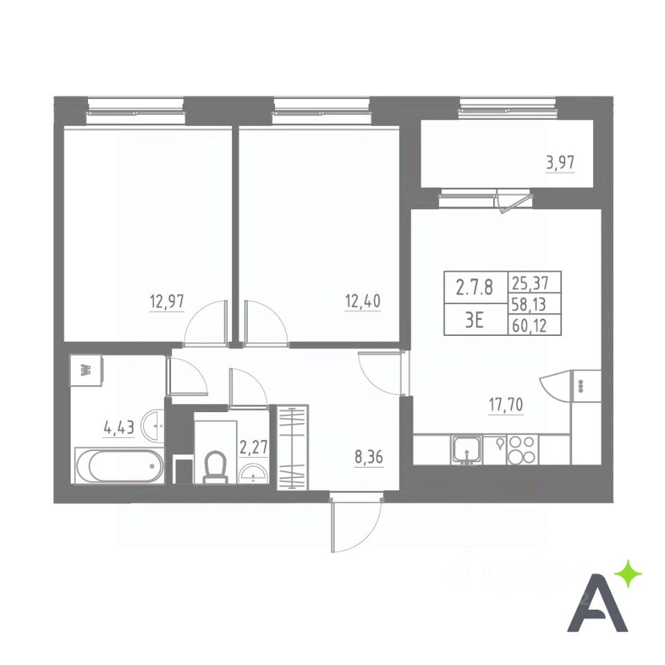 Общая площадь60,12 м2