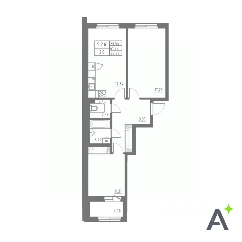 продам 2-к квартира13 654 182 ₽