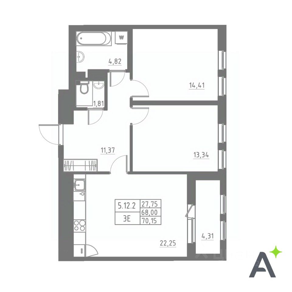 Общая площадь68,84 м2