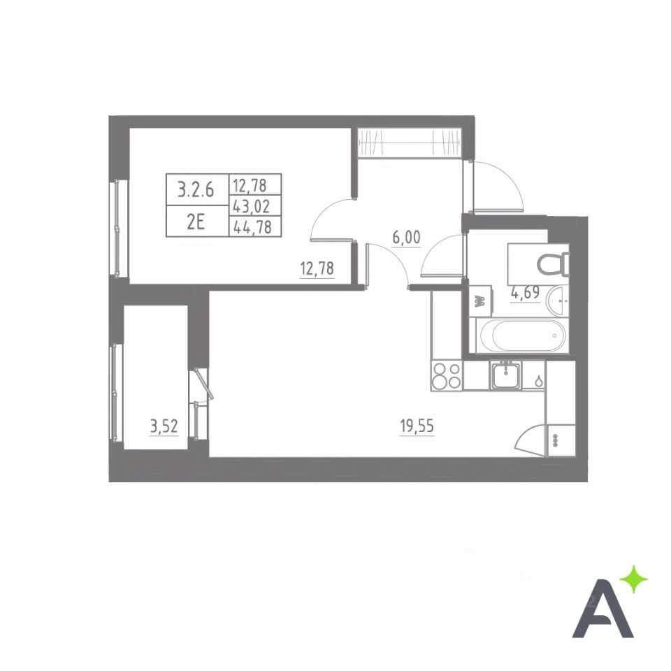 Общая площадь45,22 м2