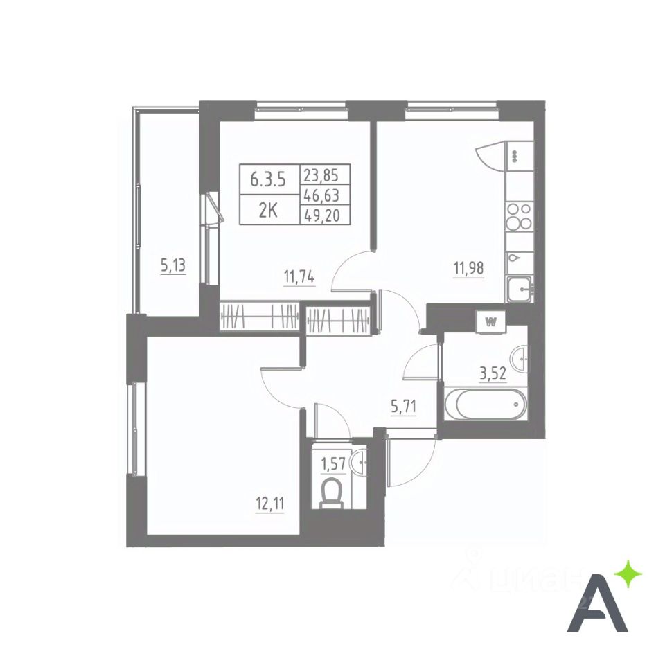 продам 2-к квартира11 859 481 ₽
