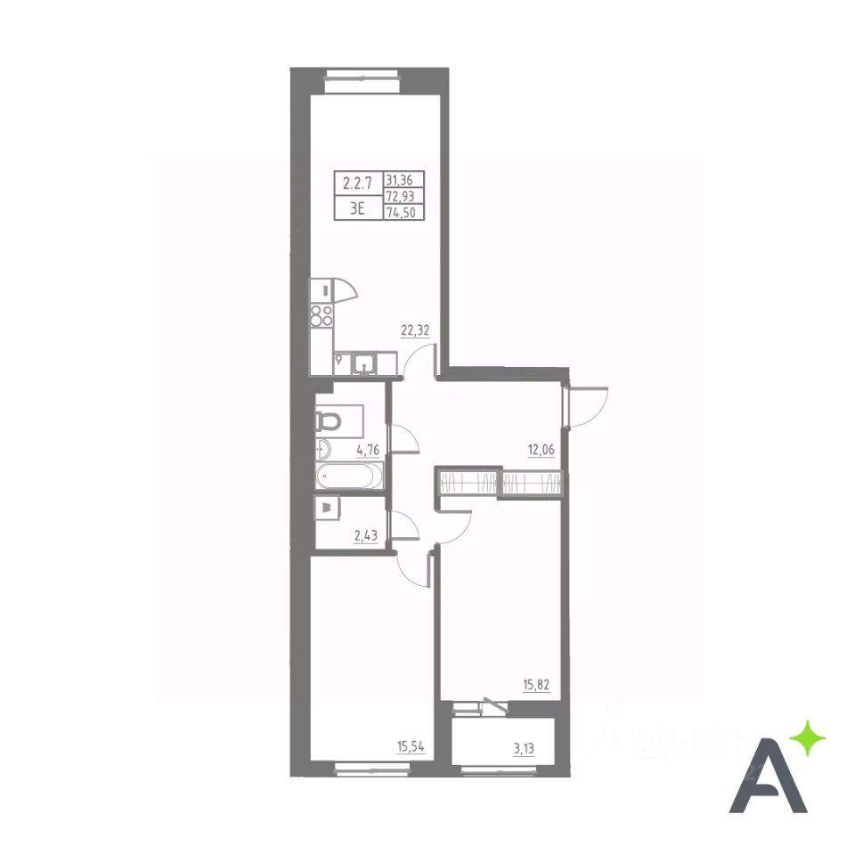 Общая площадь75,29 м2
