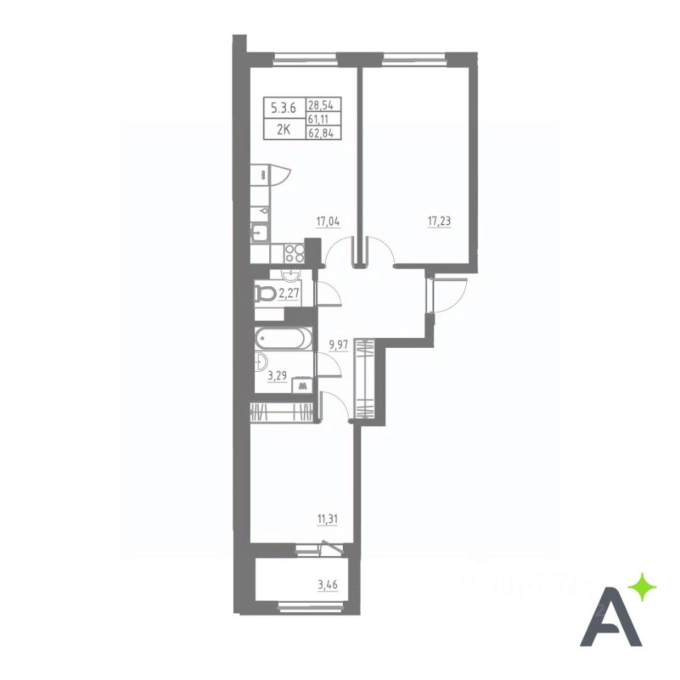 Общая площадь62,84 м2