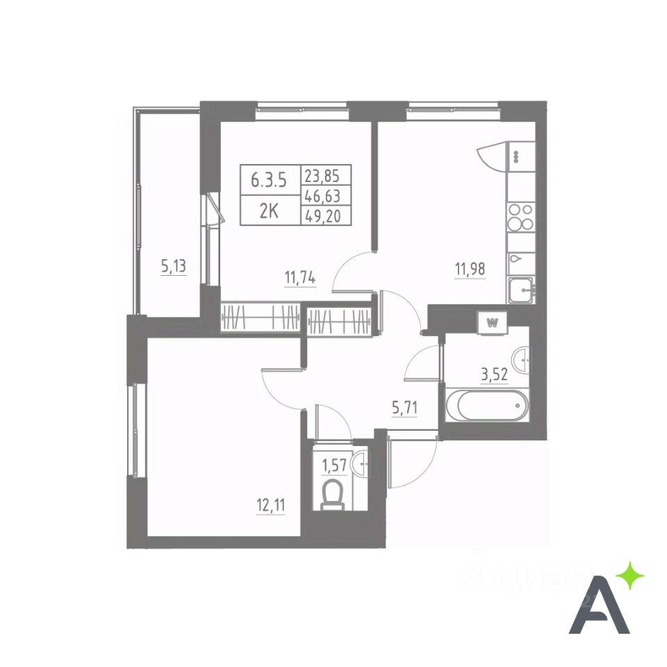 Общая площадь49,2 м2