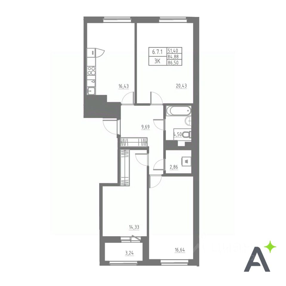 Общая площадь86,5 м2