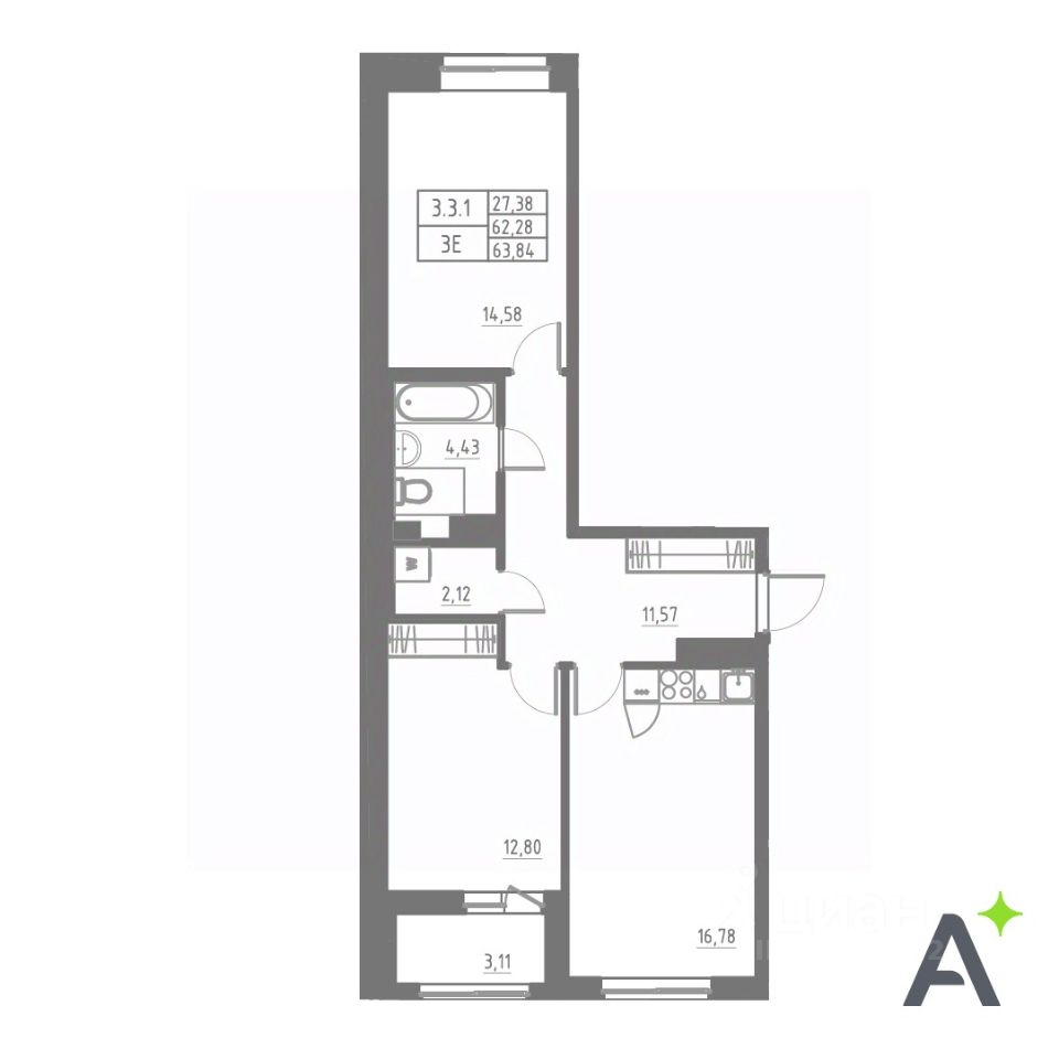 Общая площадь63,84 м2
