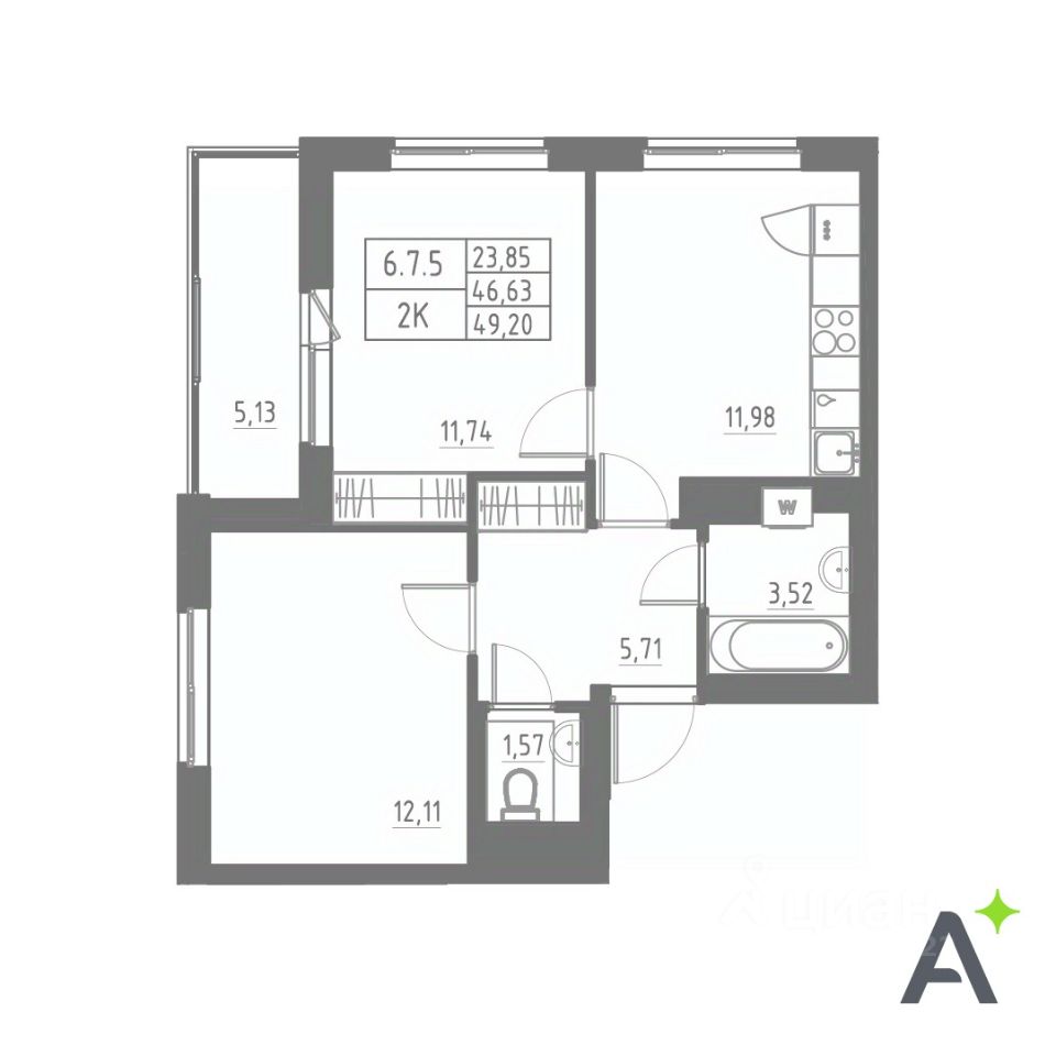 Общая площадь49,2 м2