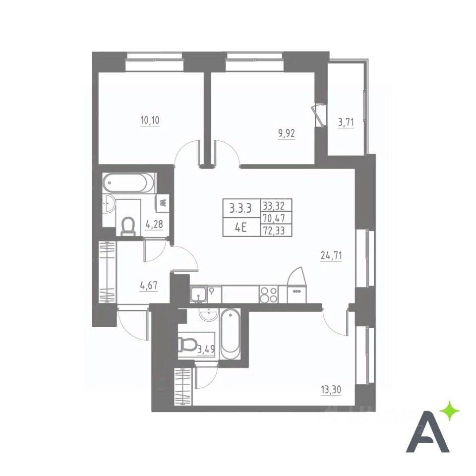 Общая площадь72,33 м2