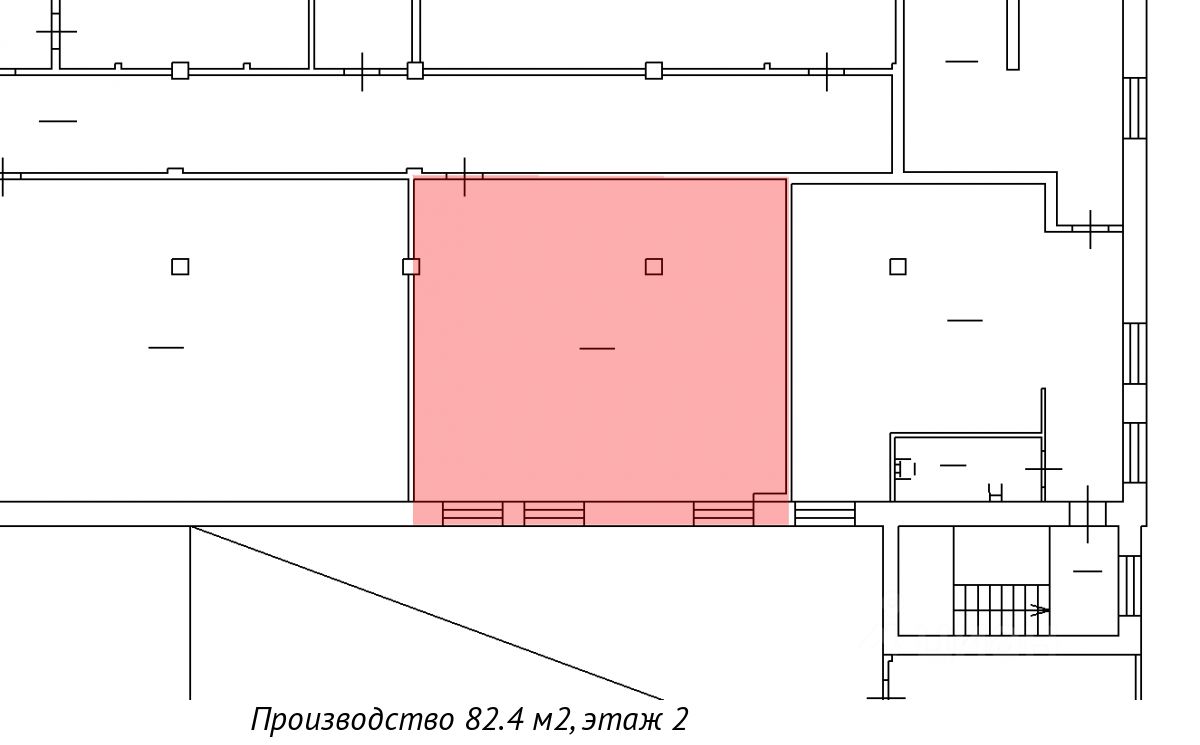 МАСТЕРСКАЯ. Помещение площадью 82.4 кв. м расположено на 2-м этаже здания на территории технопарка ''Нарвский''. Имеется грузовой лифт. Оснащение: отопление, освещение, выделенная эл. мощность, освещение. Парковка и кафе. Действует система контроля и управления доступом. Проход осуществляется по магнитным картам доступа.