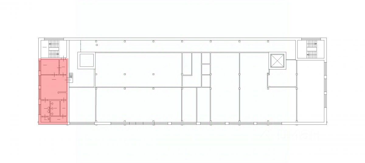 в Кировском районе города. 4 этаж здания на улице Швецова, дом 38. В здании есть лифт. Потолки 2,1 м. На стенах кафель, на полу линолеум. Оснащение: ХВС, водоотведение, отопление, освещение, пожарная сигнализация. Охрана осуществляется круглосуточно.