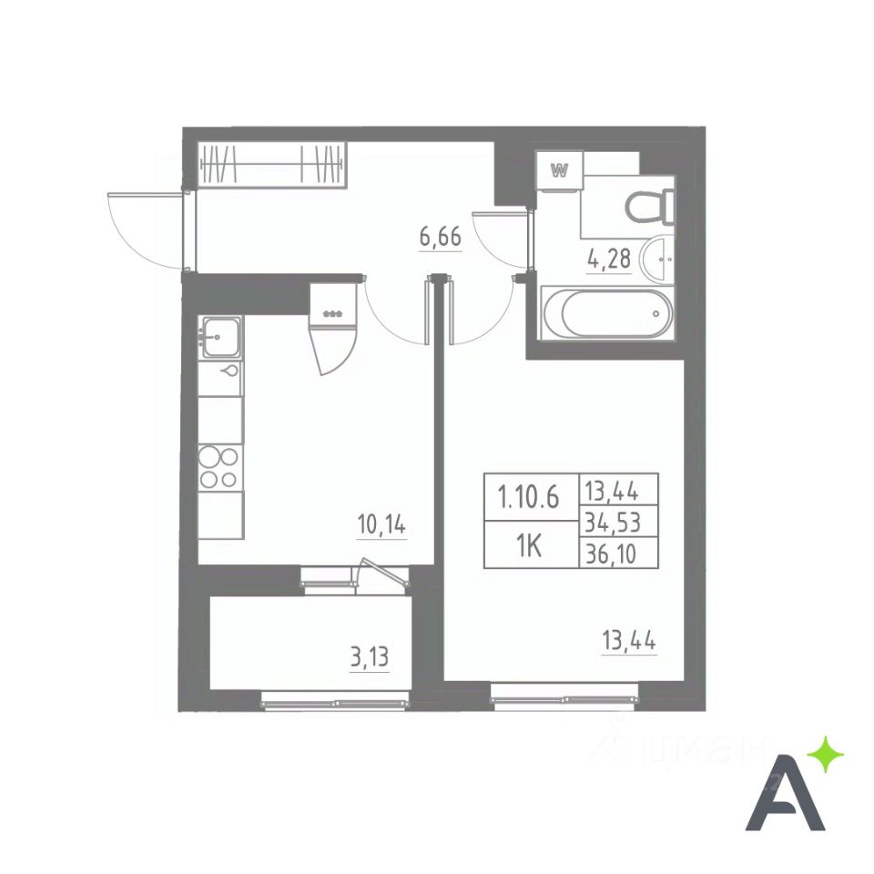 Общая площадь36,1 м2